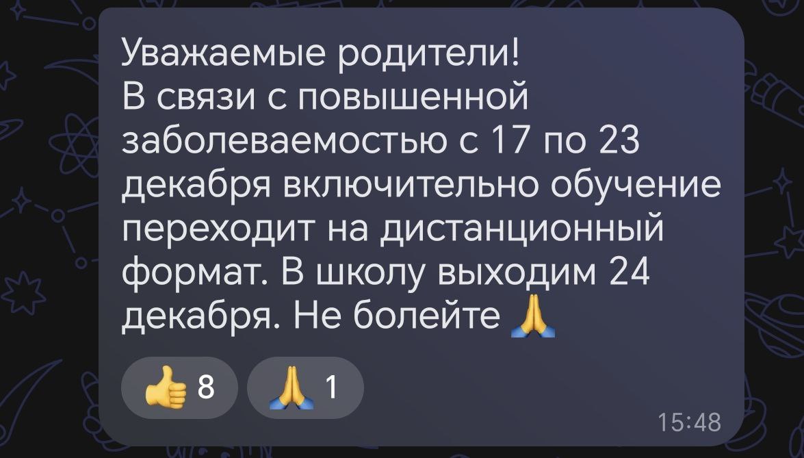 В Астраханской области наблюдается подъем заболеваемости гриппом и ОРВИ. В связи с чем, принято решение о закрытии школ и детских садов на карантин по всему региону. Глава Володарского района Регина Рамазанова сообщила о переводе на дистанционное обучение сразу десяти средних и дошкольных образовательных учреждений. «Мы ежедневно проводим мониторинг числа заболевших детей в образовательных учреждениях. Поэтому очень прошу вас соблюдать меры безопасности и не посещать с заболевшими детьми места массового пребывания людей. Сейчас особенно важно направить все усилия на лечение детей, ведь впереди много радостных мероприятий и событий, посвященных одному из самых любимых праздников - Новому году!» - отметила Регина Зульхайдаровна. С целью предупреждения распространения инфекционно-вирусных заболеваний среди детского населения, занятия в школах и учреждениях культуры ЗАТО Знаменск с 17 по 23 декабря включительно переводятся на «дистант». Ограничения вводятся и на проведение массовых мероприятий. «Общеобразовательные организации, учреждения дополнительного образования и учреждения культуры ЗАТО Знаменск перевели на неделю на дистанционное обучение», - отметили в администрации муниципалитета. А вот в Ахтубинске карантинные меры вводят локально. Ограничения касаются отдельных классов, тем временем школы продолжают работать в штатном режиме. Продолжают закрывать школы и в областном центре. Однако переводят на дистанционное обучение далеко не всех. Астраханцы бьют тревогу и просят администрации школ поскорее закрыть классы, в которых сейчас обучаются по 7-10 человек. «У нас болеет по 22 человека, а класс и школу все не закрывают. Говорят, чтобы контрольные написали. А вы меня извините, меньше половины класса учится, а остальные когда будут сдавать все «хвосты»? Когда выйдут с больничного. Тогда почему бы всех не отправить домой, чтобы не заразиться?» - негодует астраханка Вера Л. В Астрахани школы закрывают на карантин