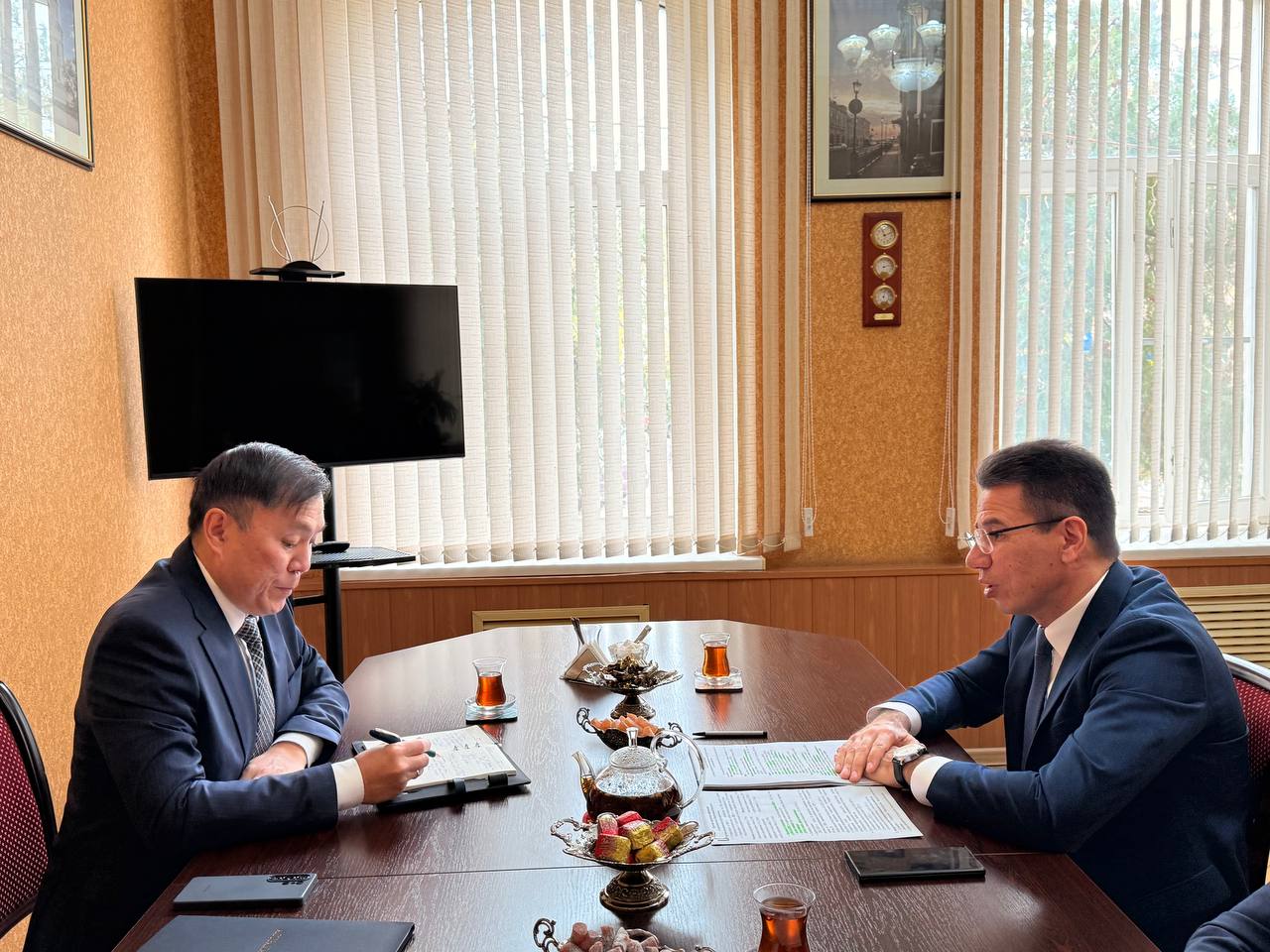 В Астрахани состоялась рабочая встреча министра внешних связей Астраханской области Владимира Головкова с Генеральным консулом Республики Казахстан Канатом Хасеновым. Стороны обсудили текущие аспекты взаимодействия двух регионов и подвели промежуточные итоги успешного сотрудничества. Владимир Головков, приветствуя коллегу, обратил внимание на насыщенность прошедшей недели мероприятиями, затрагивающими двустороннее взаимодействие России и Казахстана. Министр упомянул состоявшийся визит нового главы МИД Казахстана Ермека Кошербаева в Россию и его встречу с российским коллегой Сергеем Лавровым, а также участие губернатора Астраханской области Игоря Бабушкина в праздничных торжествах Дня Республики Казахстана в столице нашей страны. «На данных мероприятиях отмечалось, что отношения между нашими странами развиваются на основе стратегического партнерства, - сказал министр внешних связей региона. - Астраханской области отводится важная роль в укреплении разносторонних связей с приграничными территориями Казахстана». Особое внимание участники встречи уделили вопросам увеличения поставок продукции агропромышленного комплекса региона на казахский рынок. По статистическим данным, за первые 9 месяцев текущего года объемы сельскохозяйственного экспорта выросли на 20% относительно аналогичного периода предыдущего года, достигнув показателя в 20 тысяч тонн. Среди товаров были овощи (6,6 тыс. тонн), рыба и морепродукты (1,5 тыс. тонн), черная икра (180 кг), саженцы фруктовых деревьев (2 тыс.). Возобновлены поставки риса, овощных культур (капуста, морковь, свекла, кабачки, баклажаны). Отмечены также продажи клубники. «Астраханская продукция устраивает казахстанского покупателя по качеству, ассортименту и цене. Наши сельхозпроизводители планируют нарастить экспорт», - отметил Владимир Головков. Отдельно Владимир Викторович выделил важность судостроительной отрасли в отношениях с партнерами из Казахстана. Сейчас на местных предприятиях осуществляется строительство четырех буксирных судов и одного земснаряда для нужд Комитета железнодорожного и водного транспорта Министерства транспорта Казахстана. Кроме того, важное значение имеет образовательное сотрудничество. Сегодня около 542 студентов из Казахстана получают образование различного уровня квалификации в вузах и ссузах Астраханской области. Регион заинтересован в дальнейшем развитии образовательного направления. Также стороны затронули тему предстоящего XXI Форума межрегионального сотрудничества России и Казахстана, запланированного на ноябрь в городе Уральск. Здесь планируется сосредоточиться на подготовке кадров рабочих профессий. Участники встречи договорились проработать вопросы участия представителей Астраханской области в форуме.
