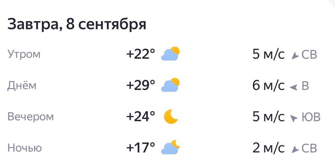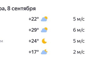 По прогнозам синоптиков, в областном центре в начале недели ожидается ясный день, без осадков. Температура воздуха в Астрахани прогреется днем до 29 градусов. К вечеру станет немного прохладнее - температура опустится до 24. Ветер восточный, 6 м/с. В народном календаре 8 сентября называли днем Натальи Овсяницы. К этому времени крестьяне завершали уборку овса. Хозяйки традиционно в этот день пекут овсяные лепешки - на счастье в семье и достаток. Народные приметы 8 сентября гласят: Если утро туманное - осень будет мягкой, Дятел стучит - к дождю, Перелетные птицы собираются в стаи - скоро ударят первые заморозки, Листья березы начали желтеть - зима будет суровая, Сильный ветер - к дождливой осени, Если пошел дождь - зима будет снежная.
