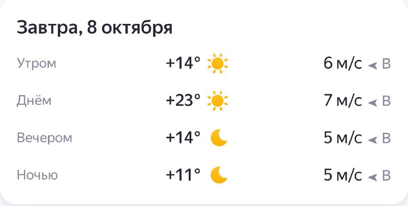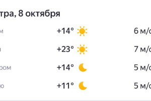 Жаль, что столь великолепные дни выпадают на рабочие будни. Вот если бы погода нас радовала таким теплом и солнцем в выходные дни, вряд ли астраханцы захотели провести их в городе. Если верить синоптикам, завтра в Астрахани будет ясный день, температура воздуха составит 23 градуса. К вечеру похолодает до 14 градусов. Ветер восточный, 5-7 м/с. Осадков не ожидается. 8 октября в народе - день Сергия Курятника. Наши предки считали плохим знаком в этот день есть куриное мясо и яйца. Наоборот, кур и весь домашний скот благодарили и особенно лелеяли. Существует несколько примет 8 октября: Теплый и безветренный день - зима будет без особых морозов, Утренний туман стелется по земле - к теплой осени, Облака низко плывут - к затяжным дождям и слякоти, Ясная звездная ночь - к холодам.
