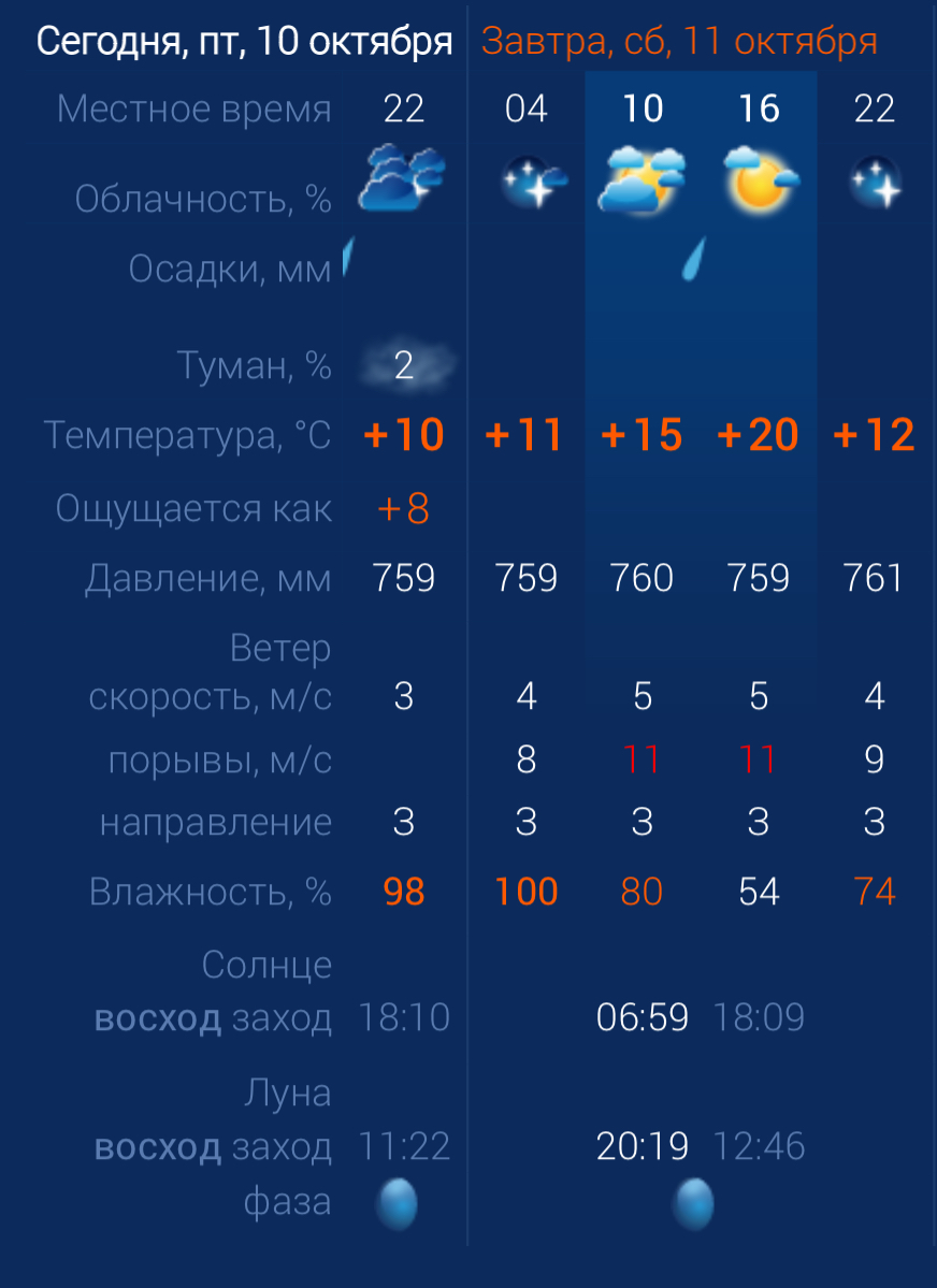 В субботу в Астраханской области вновь ожидается дождливая, но довольно теплая погода. Утром температура воздуха в городе составит +15 градусов. Днем температура повысится до +20. К вечеру похолодает до +12. Астраханцев ждет западный ветер со скоростью 5 – 11 м/с. Атмосферное давление составит 759 мм рт. ст. Влажность воздуха в пределах нормы. На территории всего региона будет восточный ветер со скоростью 5 – 13 м/с. Температура воздуха ночью опустится до +10 градусов, а днем повысится до +20. Во второй половине дня возможны осадки, а ночью - туман. Погодные приметы: птицы улетают поздно - осень будет теплая. А если рано все улетели - жди суровую зиму.