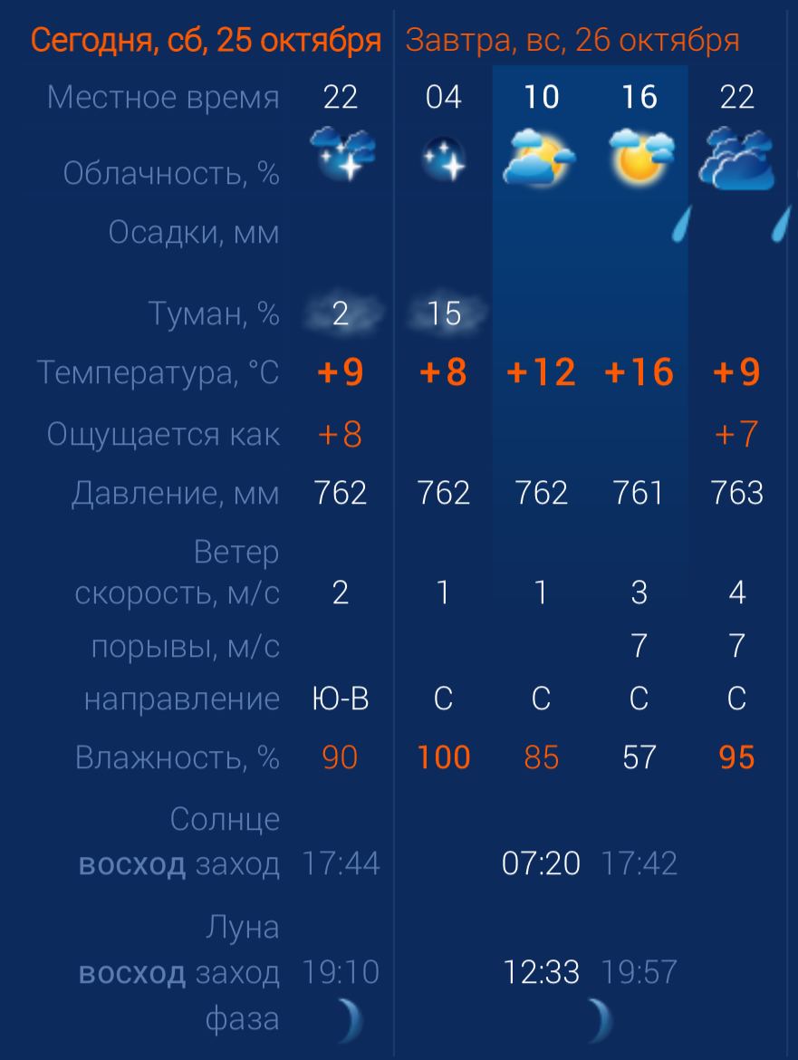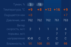 Завтра во второй половине дня в Астраханской области ожидается дождь. Также возможен туман. Утром температура воздуха в городе составит +12 градусов. Днем температура повысится до +16. К вечеру вновь похолодает до +9. Астраханцев ждет северный ветер со скоростью 3 -7 м/с. Атмосферное давление составит 761 мм рт. ст. Влажность воздуха в пределах нормы. На территории всего региона будет северный ветер со скоростью 2-5 м/с. Температура воздуха ночью опустится до +7 градусов, а днем повысится до +15. Погодные приметы: Если сом всплывают к поверхности пруда, это к дождю или грозе. Если рыба выпрыгивает из воды и плещется, скоро дождь.