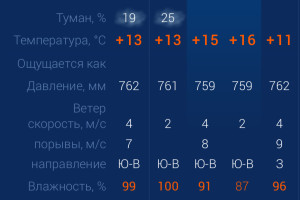 Неутешительный прогноз на завтра: дождь, ветер и туман в Астраханской области. Надеемся, местные коммунальщики знают о непогоде и уже активно к ней готовятся. Утром температура воздуха в городе составит +15 градусов. Днем температура повысится до +16. К вечеру вновь похолодает до +11. Астраханцев ждет юго-восточный ветер со скоростью 4-8 м/с. Атмосферное давление составит 759 мм рт. ст. Влажность воздуха в пределах нормы. На территории всего региона будет северный ветер со скоростью 2-8 м/с. Температура воздуха ночью опустится до +6 градусов, а днем повысится до +17. Погодные приметы: Если туман и ранним утром, и ночью над областью повис - к морозам. Если птиц уже три дня не слышно - скоро снег пойдет.