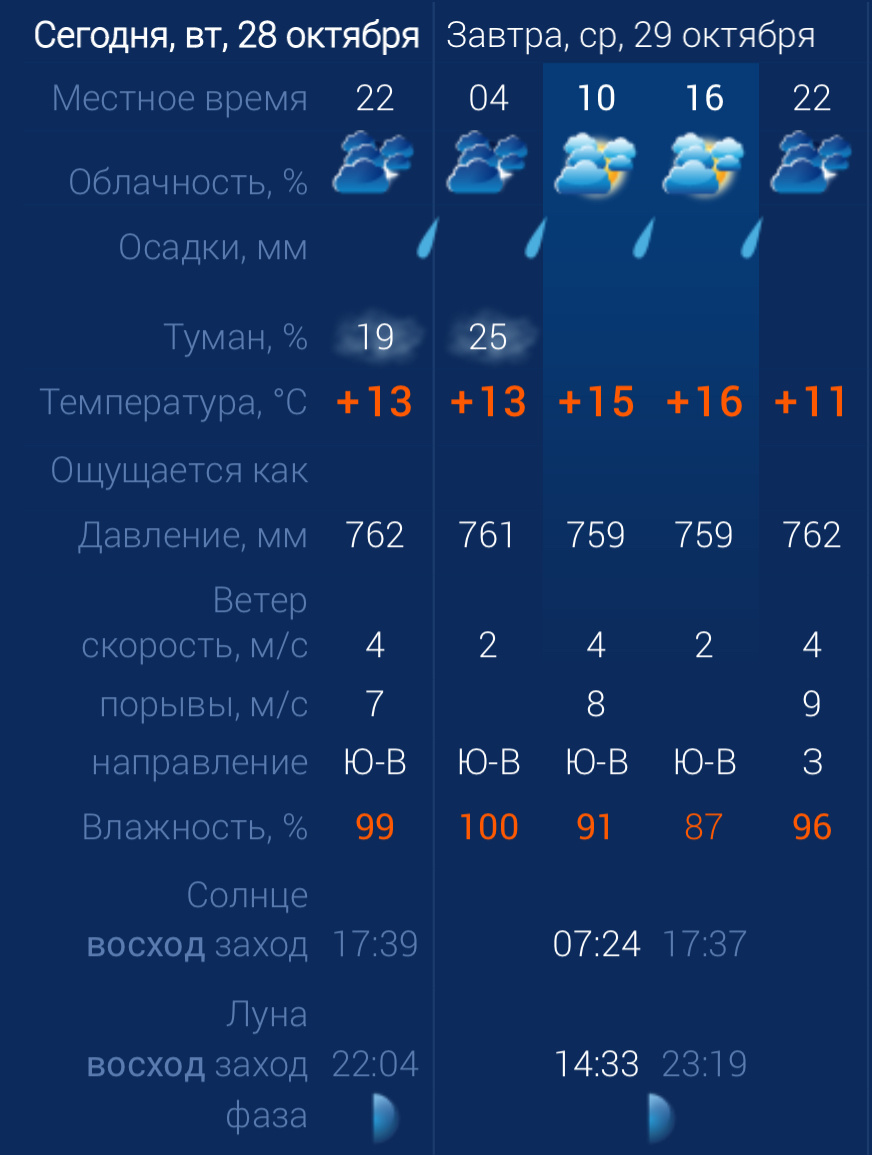 Неутешительный прогноз на завтра: дождь, ветер и туман в Астраханской области. Надеемся, местные коммунальщики знают о непогоде и уже активно к ней готовятся. Утром температура воздуха в городе составит +15 градусов. Днем температура повысится до +16. К вечеру вновь похолодает до +11. Астраханцев ждет юго-восточный ветер со скоростью 4-8 м/с. Атмосферное давление составит 759 мм рт. ст. Влажность воздуха в пределах нормы. На территории всего региона будет северный ветер со скоростью 2-8 м/с. Температура воздуха ночью опустится до +6 градусов, а днем повысится до +17. Погодные приметы: Если туман и ранним утром, и ночью над областью повис - к морозам. Если птиц уже три дня не слышно - скоро снег пойдет.