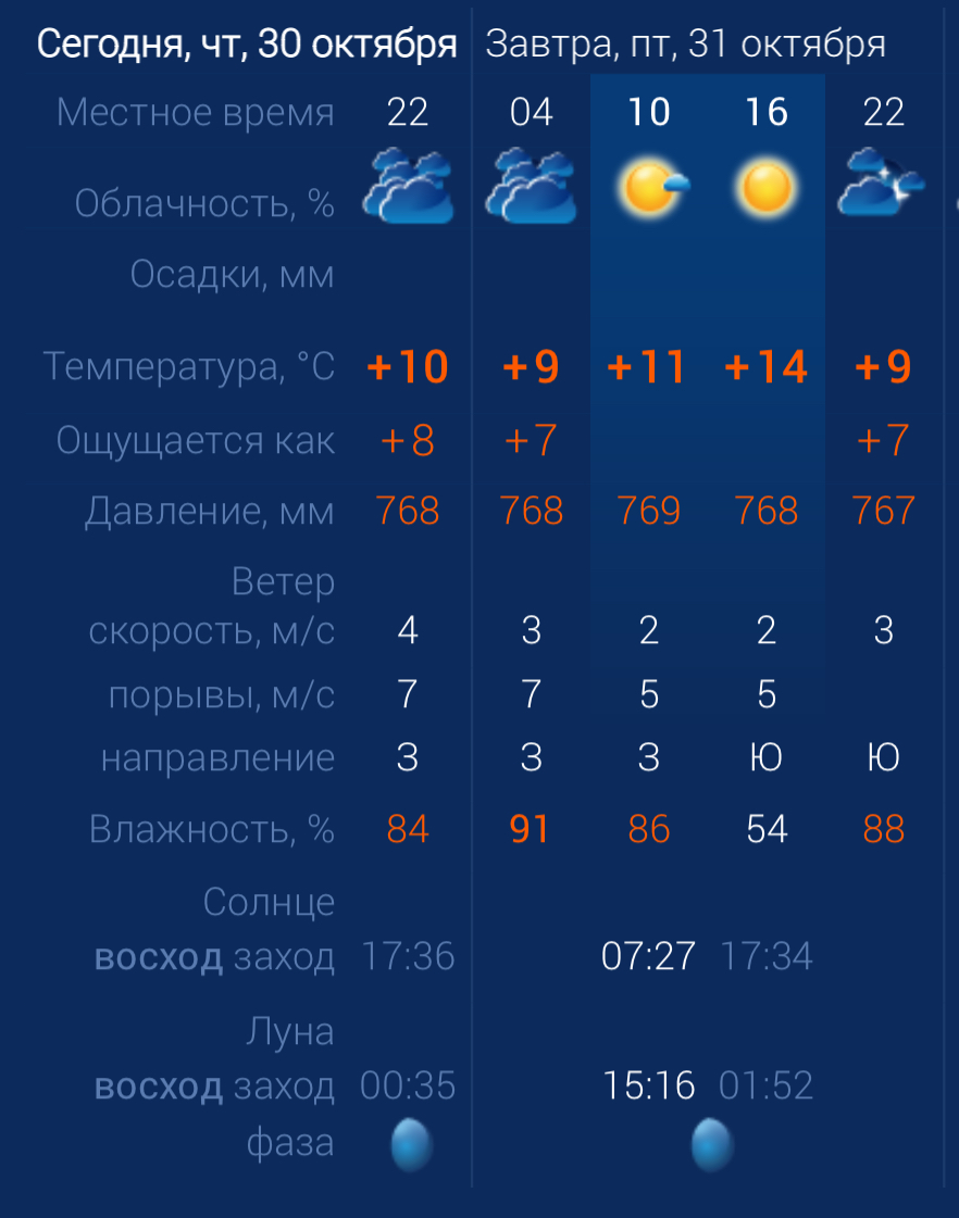 В пятницу в Астраханской области будет приятная погода - солнце и легкий ветер. Без осадков. Утром температура воздуха в городе составит +11 градусов. Днем температура повысится до +14. К вечеру похолодает до +9. Астраханцев ждет южный ветер со скоростью 2-5 м/с. Атмосферное давление составит 768 мм рт. ст. Влажность воздуха в пределах нормы. На территории всего региона будет западный ветер со скоростью 2-6 м/с. Температура воздуха ночью опустится до +7 градусов, а днем повысится до +15. Погодные приметы: Солнце в последний день октября предвещает теплую зиму. А вот если солнце за облаками скроется - к скорым морозам.