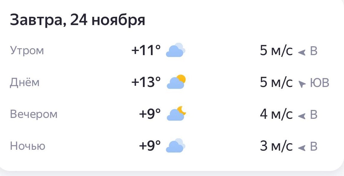 Нехарактерный для конца ноября температурный режим радует астраханцев - отличное время для прогулок на свежем воздухе. 24 ноября в Астрахани ожидается переменная облачность, температура воздуха составит днем 13 градусов. Ветер восточный, 4 м/с. Осадков не ожидается. В народном календаре 24 ноября - день Федора Студеного. Главным блюдом были наваристые щи. Полагали, что употребление большого количества супа во время трапезы обеспечит человеку тепло и здоровье в зимний период. Народные примет в этот день гласят: Холодный ветер в конце дня предвещает приближение морозов, Красноватое солнце при восходе - к метели, Утки, оставшиеся на месте, - к мягкой зиме. Сова, подлетающая к дому, — к скорым морозам.