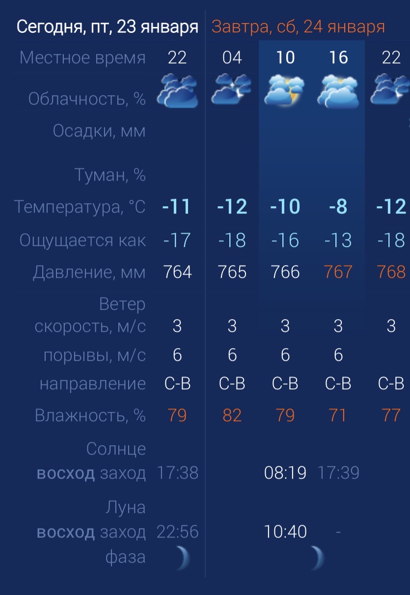 В субботу астраханцев ждет пасмурная погода. За окном будет влажно и достаточно морозно, без осадков. Утром температура в городе составит ‑10 градусов. Днем потеплеет до ‑8. К вечеру температура упадет до ‑12 градусов. Астраханцев ждет северо-восточный ветер со скоростью 3-6 м/с. Атмосферное давление составит 767 мм рт. ст. Влажность воздуха выше нормы. На территории всего региона будет северо-восточный ветер со скоростью 2-5 м/с. Температура воздуха ночью опустится до ‑10 градусов, а днем повысится до ‑8. Погодные приметы: Если ночью звезд много и ярко светят - значит, погода летом будет хорошая, урожай богатый. Когда утром деревья покрыты густым инеем - признак ясной морозной погоды, хорошего урожая зерновых осенью.