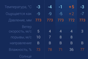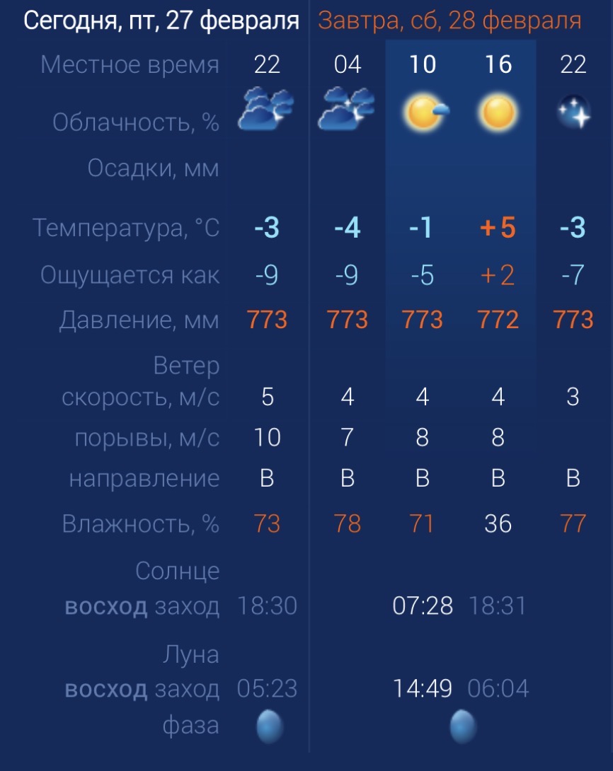 В субботу в регионе будет достаточно приятная погода - без сильного ветра и осадков. Днем за окном ожидается солнце и плюсовая температура. Утром температура в городе составит ‑1 градус. Днем потеплеет до +5. К вечеру температура упадет до ‑3 градусов. Астраханцев ждет восточный ветер со скоростью 4-8 м/с. Атмосферное давление составит 772 мм рт. ст. Влажность воздуха выше нормы. На территории всего региона будет восточный ветер со скоростью 4-8 м/с. Температура воздуха ночью опустится до ‑1 градуса, а днем повысится до +5. Погодные приметы: Ясная погода в конце зимы обещает теплое и сухое лето. Серые облака и моросящий дождь в конце февраля сулят дождливое лето и плохой урожай.