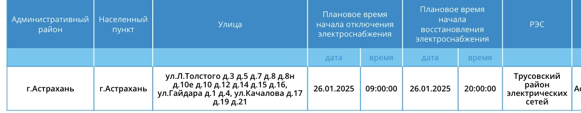 Плановые работы на электросетях проводятся не только в будние дни, но и в выходные. Об этом сообщили сотрудники ПАО «Россети Юг». Так, электричества не будет в городе Астрахань. Без света останутся жилые дома, расположенные на улицах Л.Толстого, Гайдара и Качалова. К счастью, районы области отключения не затронут. Подробности ниже: