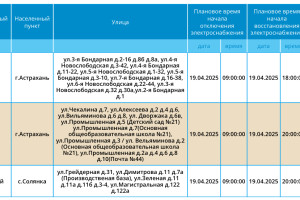 О плановых отключениях света, которые пройдут завтра, 19 апреля, сообщили в пресс-службе ПАО «Россети Юг». Итак, света не будет в Наримановском районе области, а также в городе Астрахань. Без электричества останутся жилые дома, производственная база, школа, отделение почты. Подробности в галерее ниже: