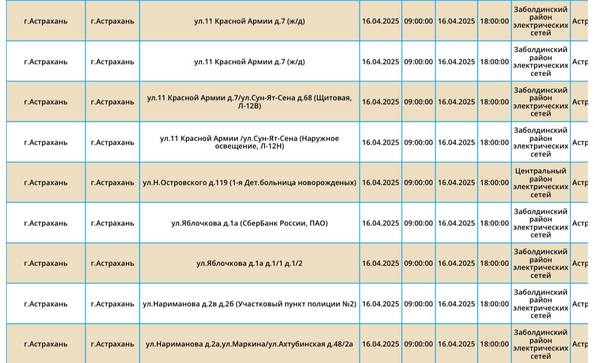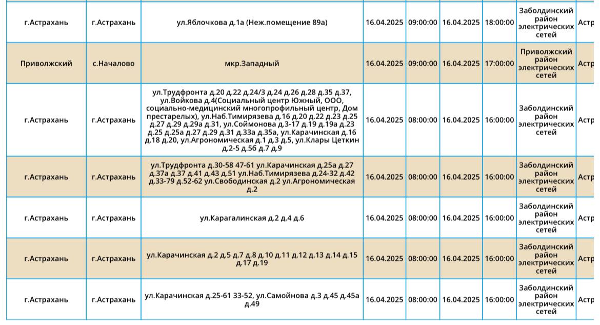 Энергетики проводят работы на электросетях, для этого часть абонентов временно обесточат. Публикуем список адресов, которые затронут плановые отключения. 22 апреля на несколько часов свет выключат на некоторых объектах в областном центре, а также в части жилых домов и административных зданий в Приволжском, Камызякском, Икрянинском, Ахтубинском и Наримановском районах региона. Полный список адресов, где завтра не будет света, можно увидеть здесь. Если отключение произошло внепланово, звоните по телефонам, которые указаны ниже: