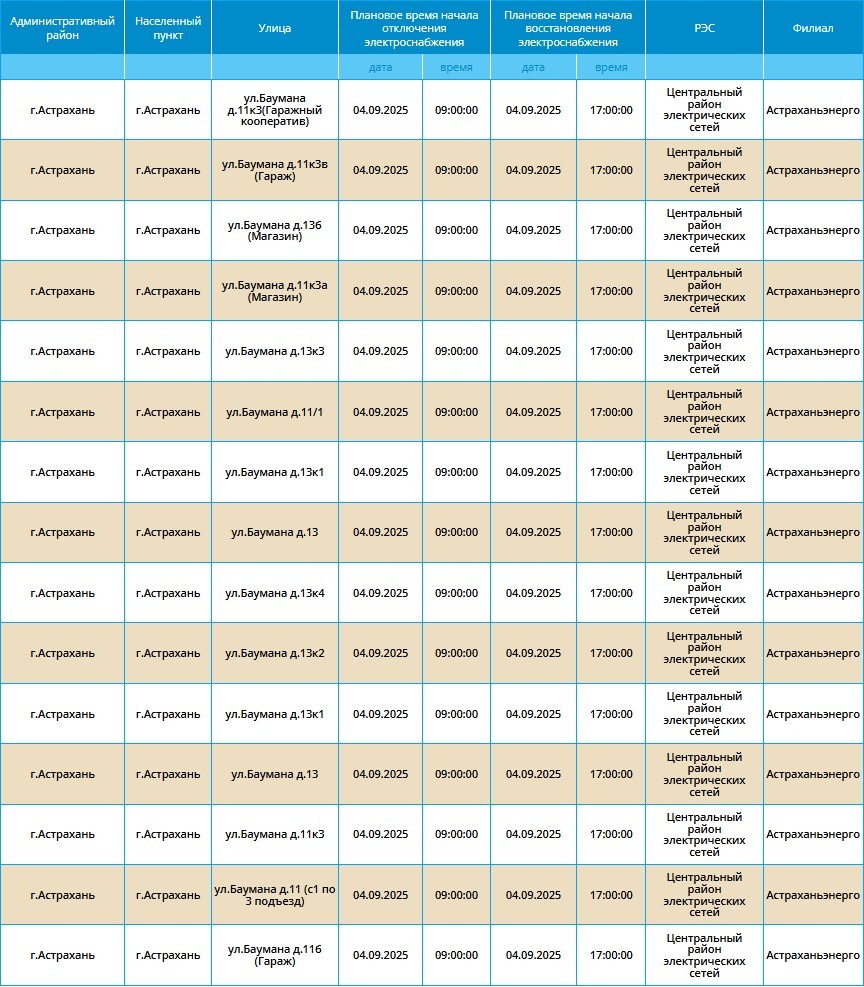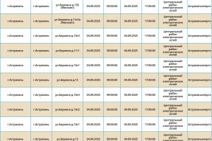 Завтра, 4 сентября, на территории Астраханской области вновь пройдут плановые отключения электричества. Об этом сообщили представители ПАО «Россети Юг». Так, света не будет как в самом городе Астрахань, так и в Икрянинском и Приволжском районах. Без электричества останутся сотни жилых домов. Подробнее со списком отключений можно ознакомиться в галерее ниже: Более оперативно получать информацию о коммунальных проблемах нашего города вы можете здесь. На сайте по активной ссылке в режиме реального времени можно наблюдать за отключениями света, воды и т.п.