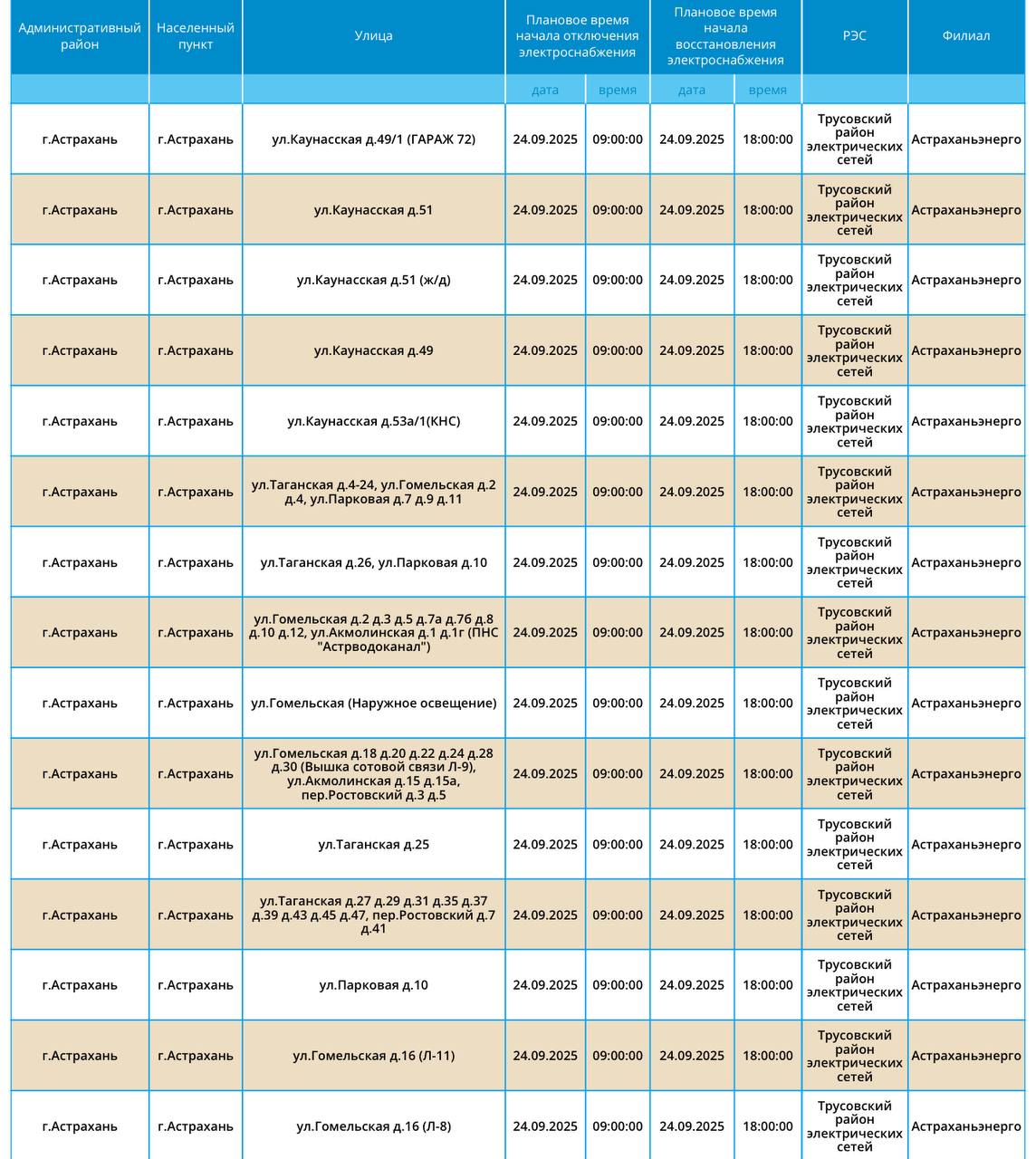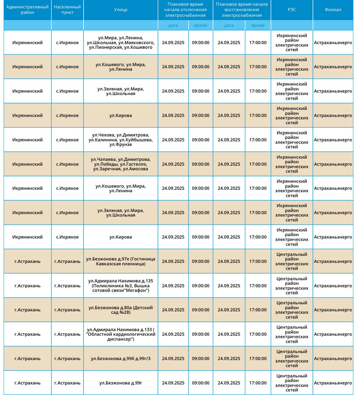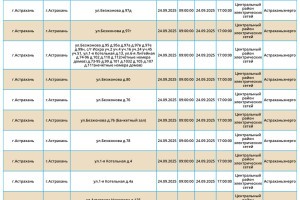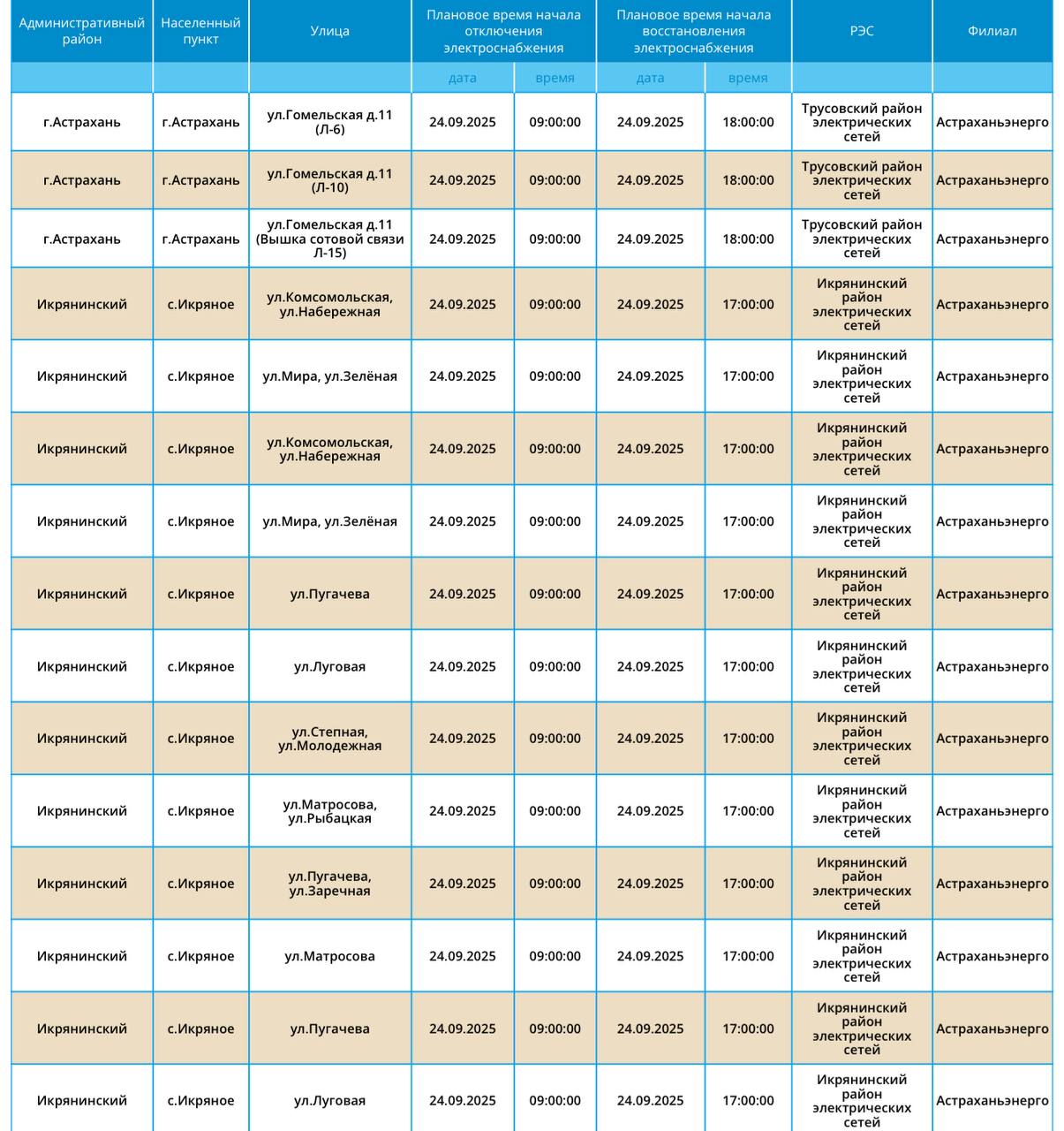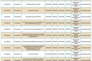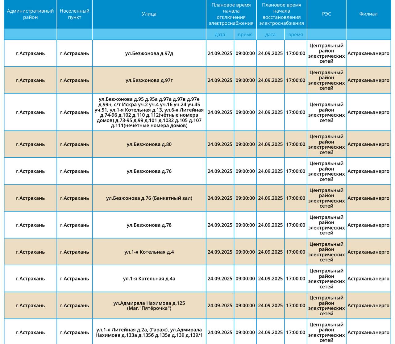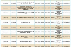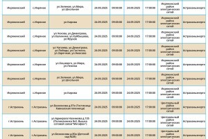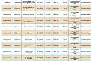 24 сентября в Астраханской области пройдут массовые отключения электричества