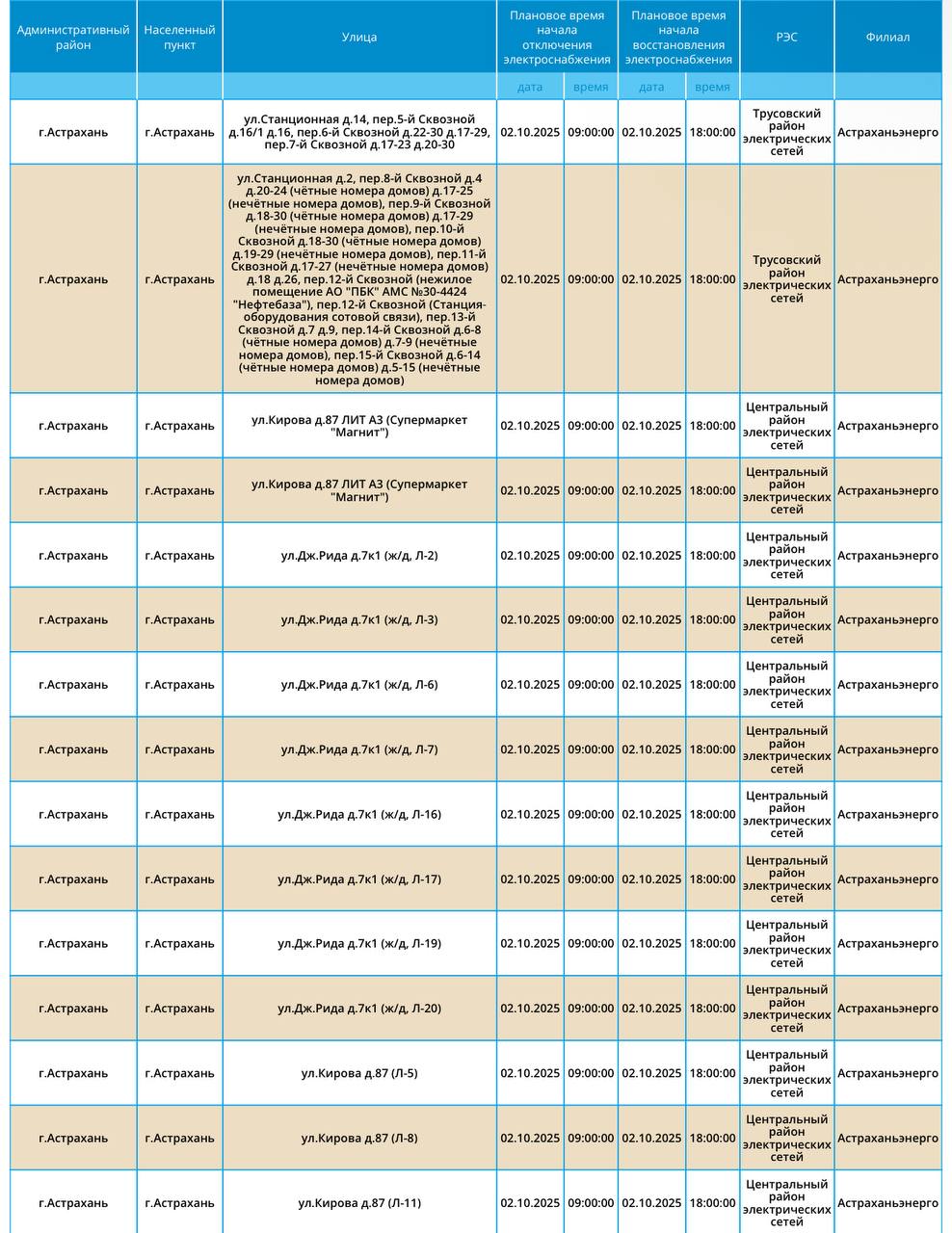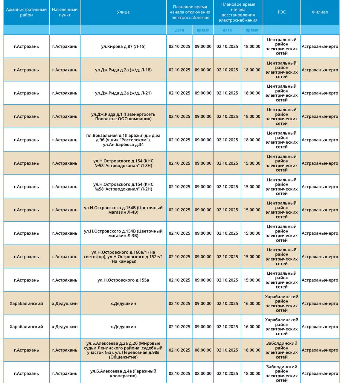 2 октября в Астраханской области снова отключат электроэнергию