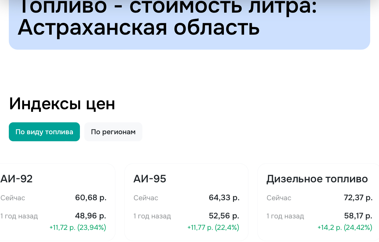 С бензином в Астраханской области происходит что-то неладное. То его и вовсе нет на заправках, то цены на топливо внушительно увеличиваются в цене всего за пару дней. Начнем, пожалуй, с того, что на протяжении прошедшей недели в регионе практически не было бензина. Астраханцы били тревогу и не могли заправить свои автомобили на АЗС. Топливо изредка подвозили, но этого не хватало. Граждане пересаживались на общественный транспорт и били тревогу. Сейчас эпопея с отсутствием топлива завершилась. По крайней мере, мы на это очень надеемся. Однако появилась другая проблема - бензин подорожал. И вроде бы есть, чем заправить машины, но еще немного и обслуживание транспорта будет серьезно бить по кошельку. Только в середине сентября мы сообщали о подорожании топлива, как цены опять выросли. В данный момент литр АИ-92 стоит 60 рублей, а всего месяц назад приобрести топливо данного сорта можно было за 59 рублей. Разница - 1 рубль. АИ-95 стоит 65 рублей, ранее он обходился астраханцам в 64 рубля за литр. А вот цены на дизель уже по доброй традиции не меняются. «Такое чувство, что я не на машине, а на космическом корабле передвигаюсь. Откуда такие цены. Сколько это будет продолжаться? Проще электрокар покупать уже или на газ пересаживаться, я уже не знаю даже», - жалуется астраханец Вадим П. А вот вам наглядный пример. Первое фото было сделано 20 сентября. Литр 95-го стоил 66,49 рубля. А через две недели стоимость данного сорта топлива увеличилась на 30 копеек. Беспредел. На небольших заправках можно найти топливо подешевле. Вопрос в его качестве. Но это уже личное дело каждого. «Зарплаты так не растут, как цены на бензин. Да вообще ничего так не увеличивается в цене, такое чувство. Я прям страдаю из-за этого всего, не поверите. Чуть ли не раз в два дня цена на 30 копеек увеличивается. Так еще и в «Яндекс драйв» перестали скидку давать на топливо. Хотя бонусы на других АЗС начисляются, пока», - сетует астраханец Анатолий Т. Подскочили цены на топливо буквально по всей стране. Стоимость топлива в Астраханской области и других субъектах РФ сравнялась, это радует. Особого разбега, как это было ранее, к счастью, уже нет. И это не пустые слова: Так и получается, что цены на бензин растут по всей России. Однако эксперты уверены: увеличение стоимости топлива не превысит уровень инфляции. Остается только надеяться, ведь другого выхода нет. В любом случае, машины на воздухе или воде не едут. Да и на такси не наездишься, впрочем, и перевозки пассажиров на легковушках совсем скоро могут подорожать из-за изменения цен на топливо. Замкнутый круг. Дешевле ходить пешком, да еще и полезно. Астраханцы вынуждены пересаживаться на общественный транспорт из-за отсутствия бензина
