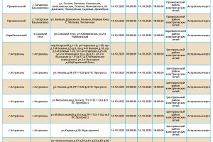 Завтра, 14 октября, пройдут плановые работы по обслуживанию электросетей, вследствие чего многие абоненты временно лишатся энергоснабжения. Отключения коснутся как самих жителей областного центра, так и Приволжского, Ахтубинского, Харабалинского и Черноярского районов. Без света останутся детские сады, школа искусств и АЗС. Подробный список адресов можно узнать в галерее ниже: Напоминаем, что следить за актуальной информацией о проблемах коммунальной сферы в городе Астрахань можно на удобной интерактивной карте. Здесь вы всегда сможете узнать свежую информацию о текущих профилактических мероприятиях, таких как временное прекращение подачи электроэнергии, воды и прочих коммунальных услуг. Если же непредвиденное отключение произошло неожиданно, незамедлительно обращайтесь по указанным контактным номерам телефонов: