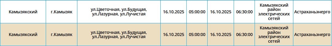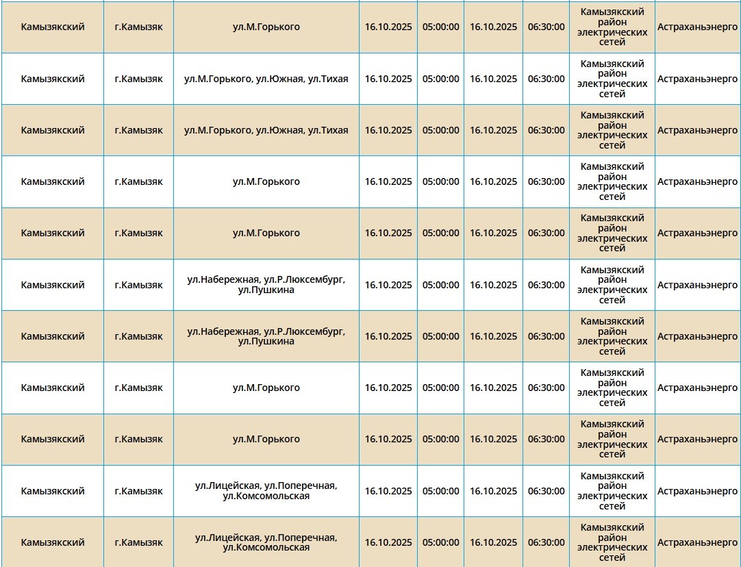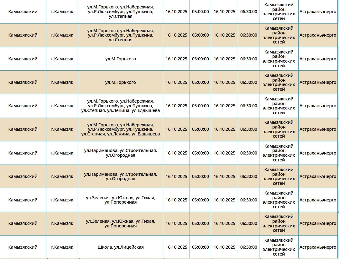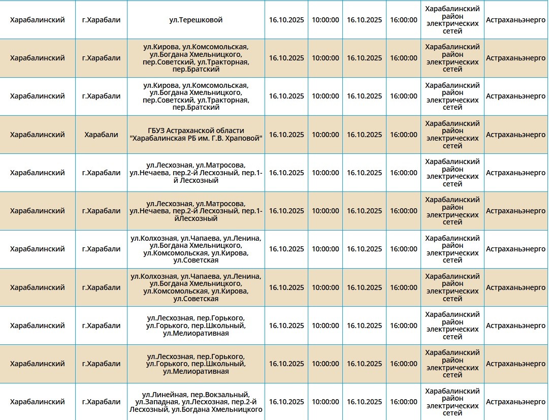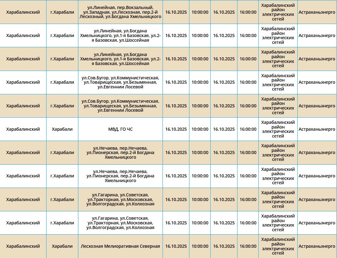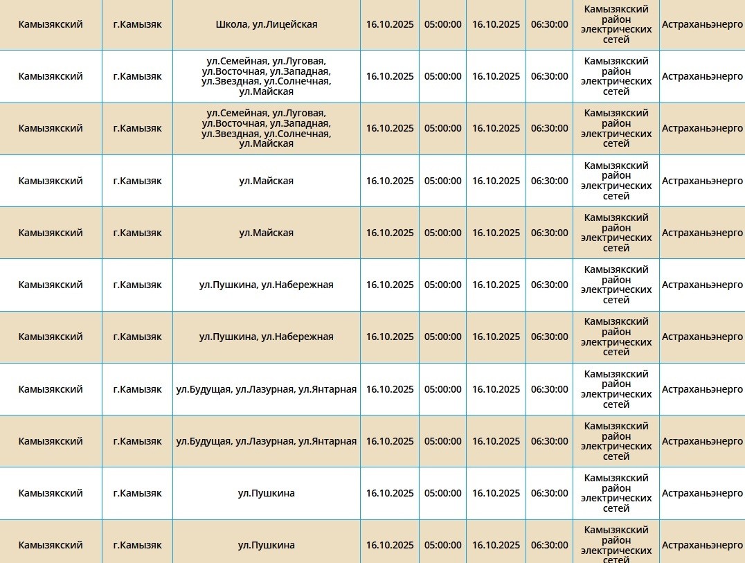 Завтра, 16 октября, в Астраханской области вновь пройдут плановые отключения электроэнергии. Без света останутся сотни улиц города и области. Отключения в частности затронут как жителей областного центра, так и проживающих в Харабалинском и Камызякском районах. Подробнее со списком адресов можно ознакомиться ниже: А информацию обо всех коммунальных проблемах нашего города вы можете найти здесь. На этом сайте, в режиме реального времени, вы можете наблюдать за отключениями света, воды и т.д. Если отключения произошли внепланово, звоните по телефонам, которые указаны ниже: