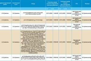 В понедельник, 20 октября, в городе Астрахань пройдут плановые отключения электричества, об этом сообщили сотрудники ПАО «Россети Юг». В частности без света останутся жители областного центра. Самые ранние отключения начнутся в 08:00 и продлятся 10 часов. Подробнее со списком адресов, по которым не будет электричества, можно ознакомиться ниже: Напоминаем, что следить за актуальной информацией о проблемах коммунальной сферы в городе Астрахань можно на удобной интерактивной карте. Здесь вы всегда сможете узнать свежую информацию о текущих профилактических мероприятиях, таких как временное прекращение подачи электроэнергии, воды и прочих коммунальных услуг. Если же непредвиденное отключение произошло неожиданно, незамедлительно обращайтесь по указанным контактным номерам телефонов: