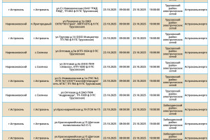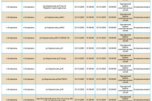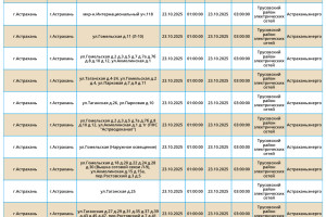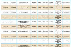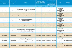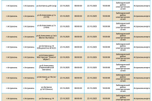 Тысячи абонентов останутся без электроэнергии, сообщили сотрудники ПАО «Россети Юг». Кроме того, свет отключат в нескольких школах, больницах и кафе. Отключения электричества пройдут как в самом областном центре, так и в Наримановском, Харабалинском, Приволжском и Черноярском районах. Подробнее со списком адресов можно ознакомиться в галерее ниже: Также напоминаем, что удобнее всего следить за актуальной информацией о перебоях с электричеством, водоснабжением и прочими бытовыми неудобствами на интерактивной карте города. А в случае, если отключения произошли незапланированно, обращайтесь по указанным ниже номерам телефонов: