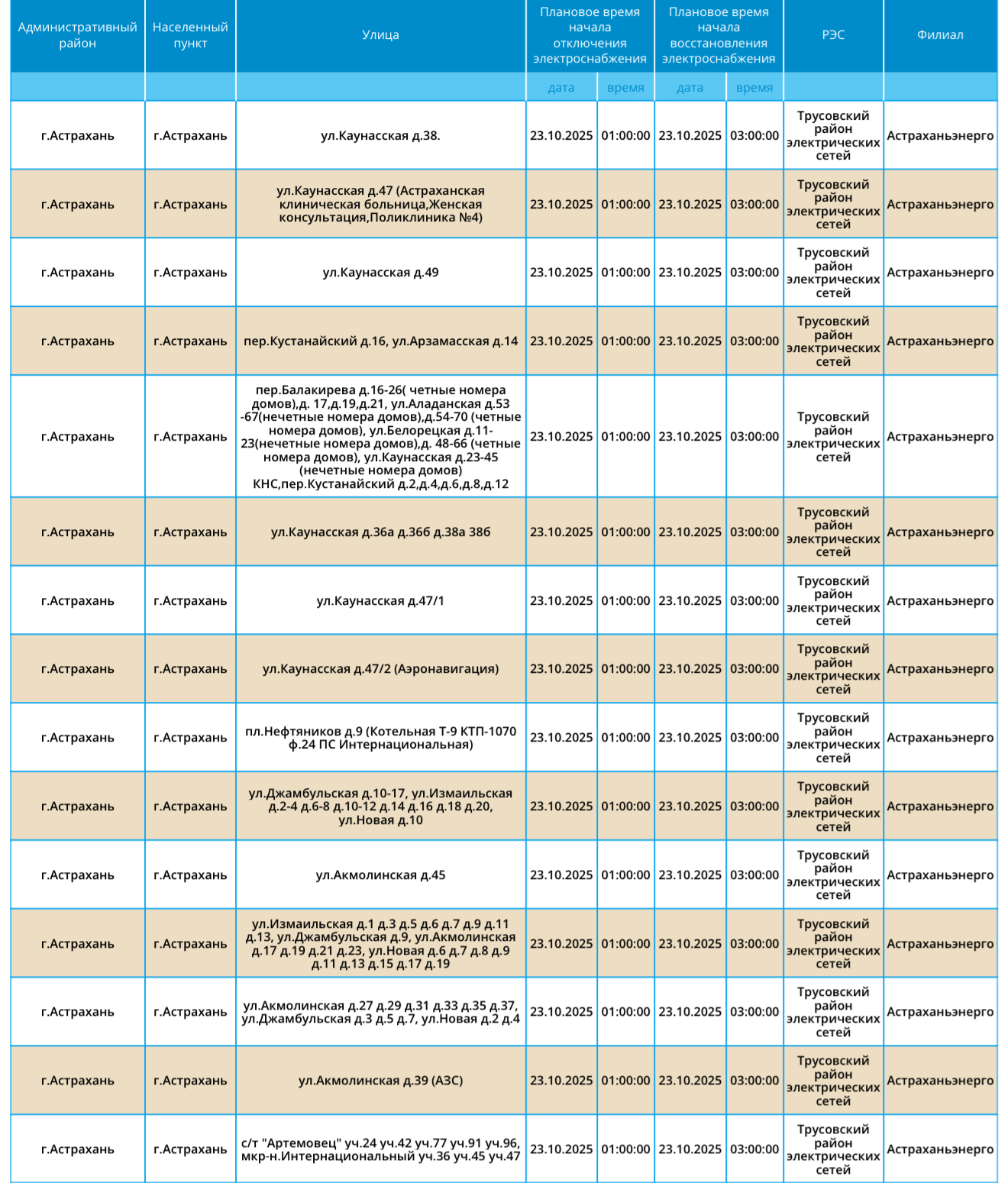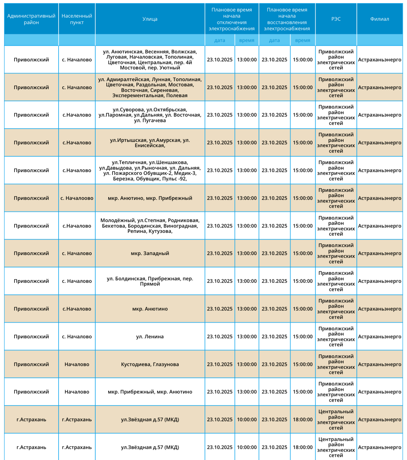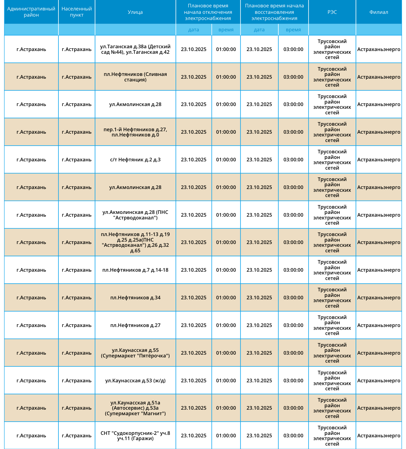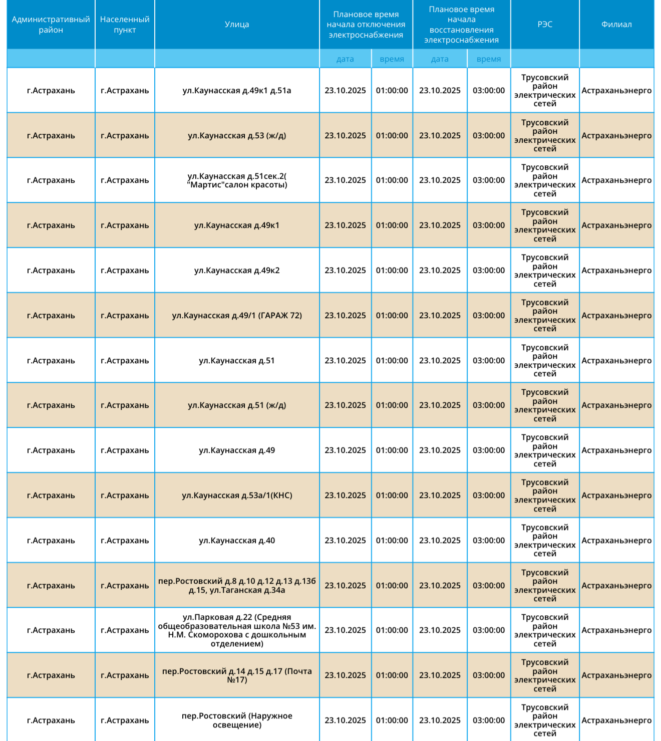 Тысячи абонентов останутся без электроэнергии, сообщили сотрудники ПАО «Россети Юг». Кроме того, свет отключат в нескольких школах, больницах и кафе. Отключения электричества пройдут как в самом областном центре, так и в Наримановском, Харабалинском, Приволжском и Черноярском районах. Подробнее со списком адресов можно ознакомиться в галерее ниже: Также напоминаем, что удобнее всего следить за актуальной информацией о перебоях с электричеством, водоснабжением и прочими бытовыми неудобствами на интерактивной карте города. А в случае, если отключения произошли незапланированно, обращайтесь по указанным ниже номерам телефонов: