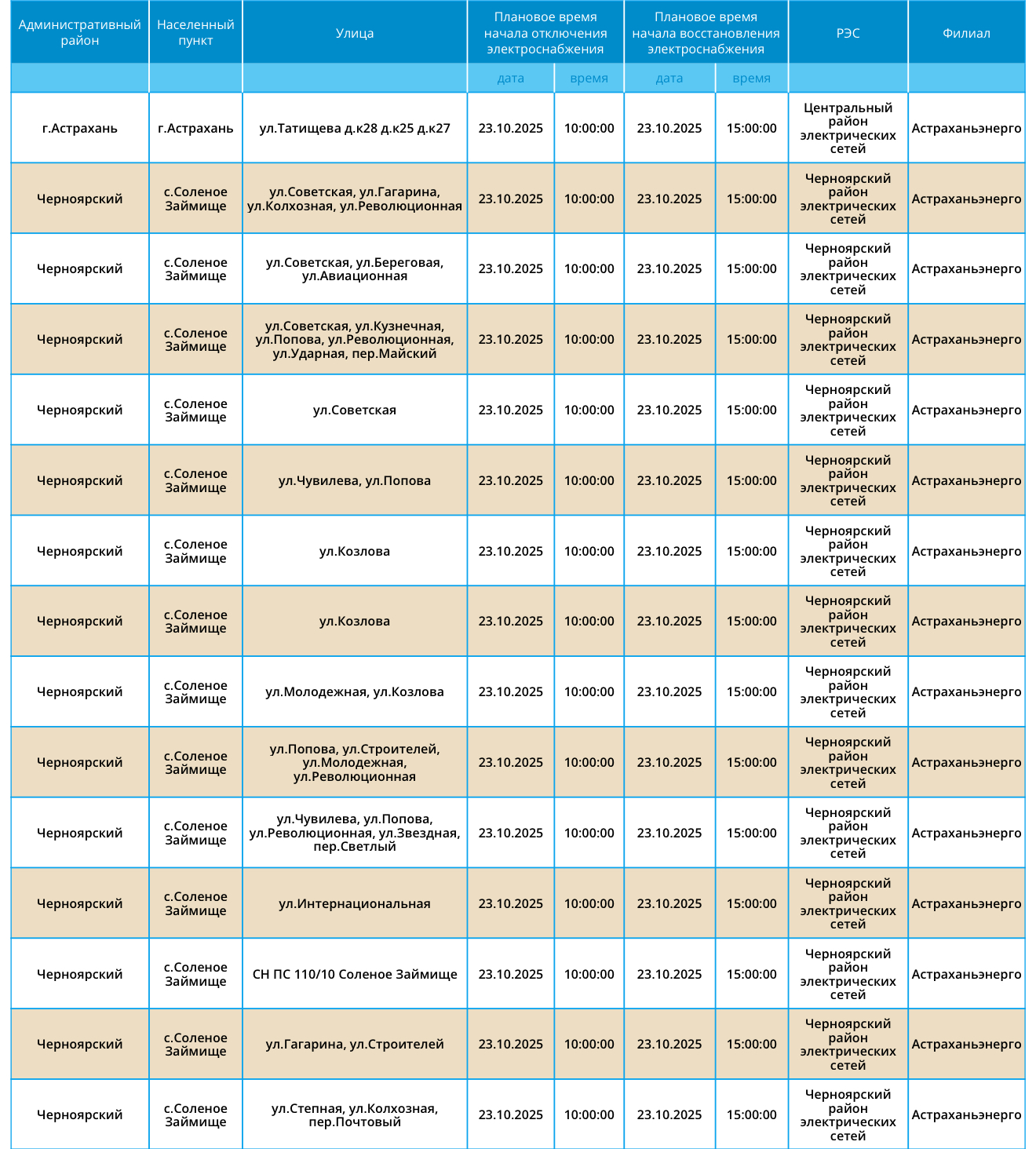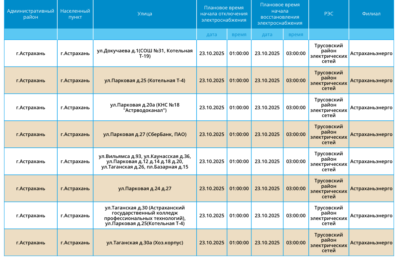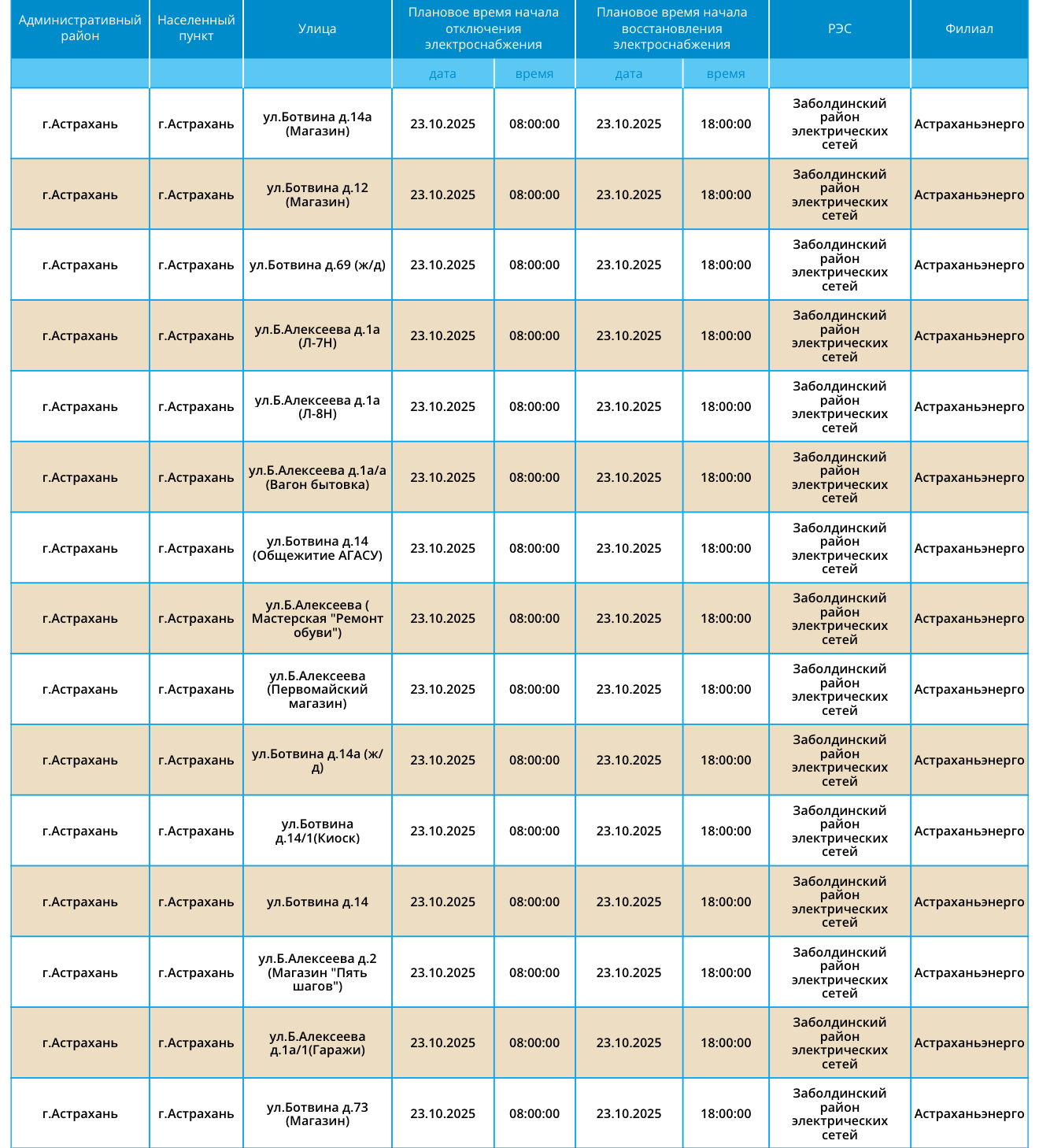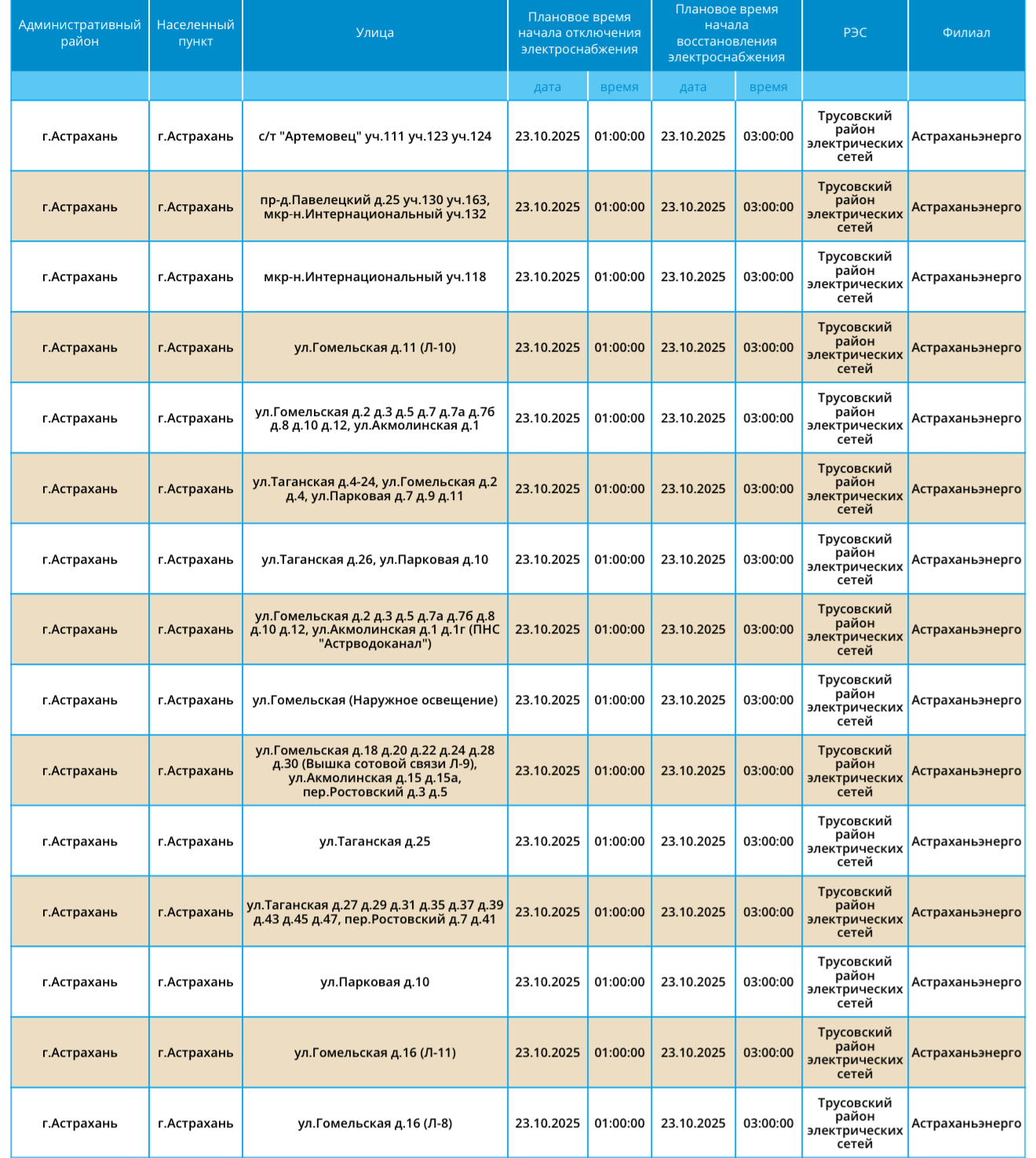 Тысячи абонентов останутся без электроэнергии, сообщили сотрудники ПАО «Россети Юг». Кроме того, свет отключат в нескольких школах, больницах и кафе. Отключения электричества пройдут как в самом областном центре, так и в Наримановском, Харабалинском, Приволжском и Черноярском районах. Подробнее со списком адресов можно ознакомиться в галерее ниже: Также напоминаем, что удобнее всего следить за актуальной информацией о перебоях с электричеством, водоснабжением и прочими бытовыми неудобствами на интерактивной карте города. А в случае, если отключения произошли незапланированно, обращайтесь по указанным ниже номерам телефонов: