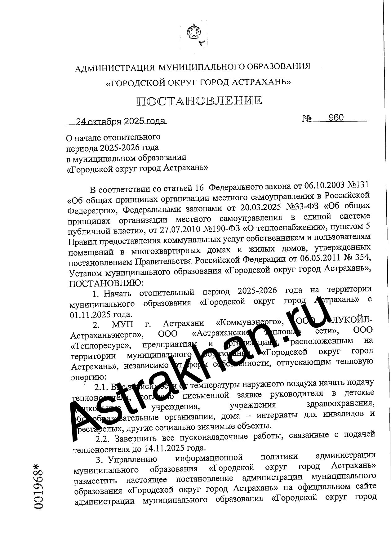 С 17 сентября по 1 октября астраханцы пережили очередное плановое отключение горячей воды для подготовки теплосетей к отопительному сезону. Сегодня власти города назвали точную дату начала подачи тепла в дома. Отопительный период 2025-2026 года в городе Астрахани стартует с 1 ноября. Соответствующее постановление сегодня подписал глава города Игорь Редькин. Начиная с субботы, в квартирах астраханцев наконец-то начнет теплеть. Разумеется, это произойдет лишь в том случае, если управляющие компании заранее обеспечили готовность всех необходимых инженерных сетей к предстоящему отопительному периоду. Без сомнения, у местных жителей появится один важный вопрос. В этом году подача отопления начнется с 1 числа месяца, а значит, заплатить придется за полный месяц, это удобно и понятно. Однако, если же отопление вдруг решат прекратить в середине апреля 2026 года, то как тогда оплачивать данную коммунальную услугу? Стоит напомнить, что сумма оплаты за отопление определяется исходя из особенностей конкретного здания. Так, если дом оборудован коллективным теплосчетчиком (ОДПУ), расчеты производятся согласно его показаниям, учитывая реальное потребление тепловой энергии. Следовательно, жильцам таких домов дата старта и окончания периода отопления особого значения не имеет. Однако там, где отсутствует общий прибор учета, начисления идут по установленным нормам, рассчитанным на 6 месяцев отопительного сезона, вне зависимости от реальной длительности подачи ресурса. Важно отметить, что поставщики услуг сохраняют возможность предъявить полную месячную оплату, даже если тепло подавалось всего несколько дней в месяце. Будет любопытно посмотреть, решат ли исполнители воспользоваться данным правом в наступающем сезоне или же вновь последуют обращения заинтересованных сторон в суд совместно с Роспотребнадзором.