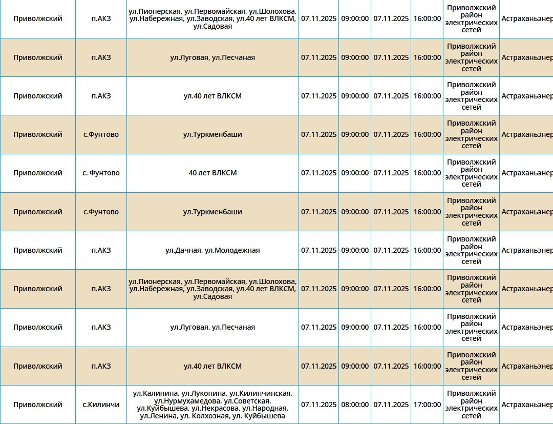 Завтра на территории Астраханской области продолжатся плановые ремонтные работы на электросетях. В связи с этим пройдут отключения электроэнергии, сообщают сотрудники ПАО «Россети Юг». Так, без электричества останутся как жители самого областного центра, так и Ахтубинского и Приволжского районов, а также ЗАТО Знаменск. Отключения затронут детский сад, библиотеку и церковь. Подробнее со списком адресов можно ознакомиться в галерее ниже: Все коммунальные проблемы нашего города отображаются на этой интерактивной карте. Вы можете следить за ситуацией с отключением электроэнергии, водоснабжения и других услуг в режиме онлайн. В случае возникновения непредвиденных ситуаций обращайтесь по представленным контактным номерам телефонов: