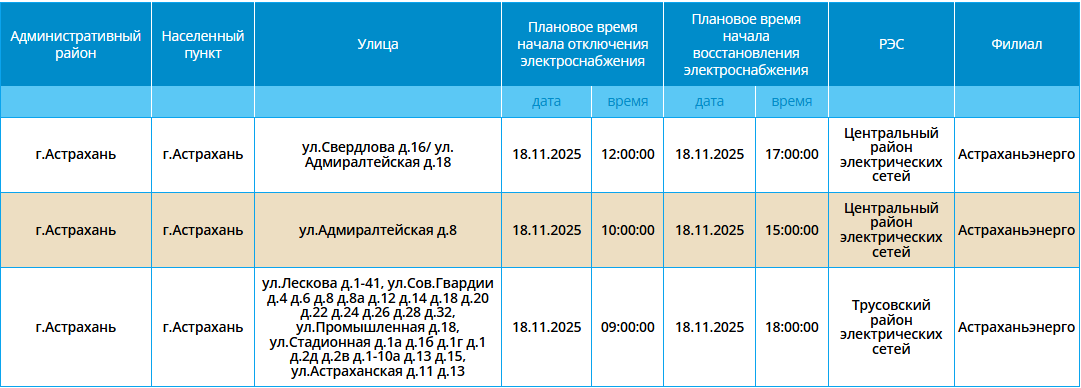 Завтра на территории города Астрахани на некоторых улицах отключат электроэнергию. Но не стоит беспокоиться, отключения запланированные и продлятся всего несколько часов. Так, света не будет на нескольких улицах центральной части города, а также в Трусовском районе. Самые ранние отключения начнутся в 09:00. Подробнее со списком адресов можно ознакомиться на фото ниже: Кстати, информацию обо всех коммунальных проблемах нашего города вы можете найти здесь. На этом сайте, в режиме реального времени, можно наблюдать за отключениями света, воды и т.д. А если отключения случились внепланово, звоните по телефонам, которые указаны на фото ниже: