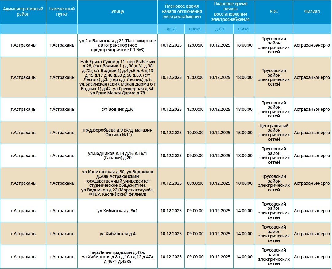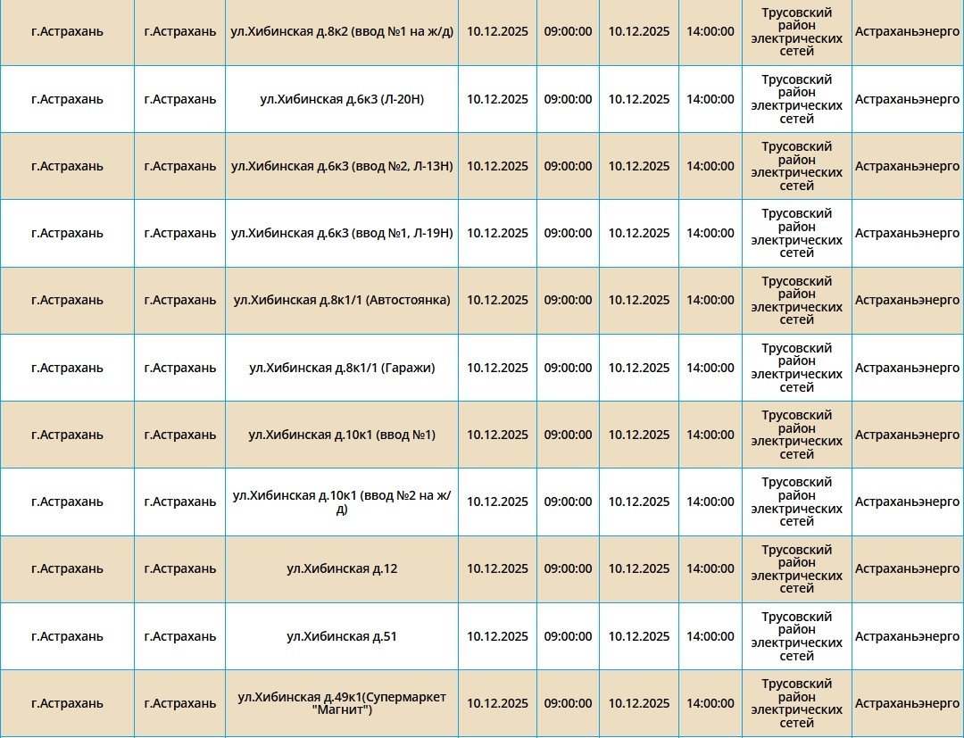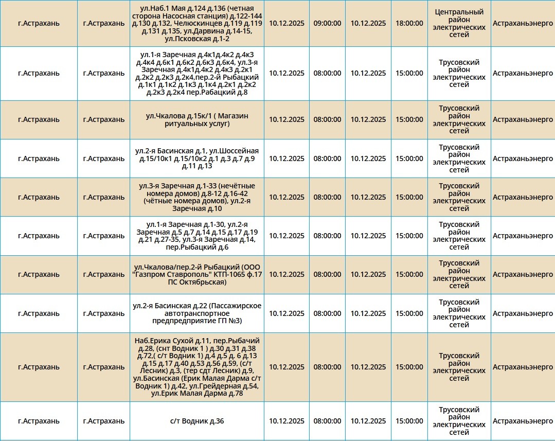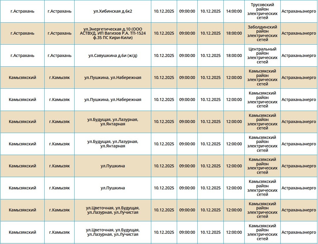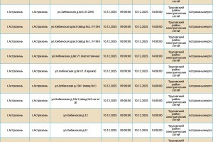 10 декабря некоторые астраханцы останутся без электроэнергии