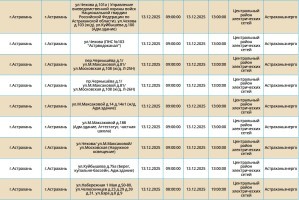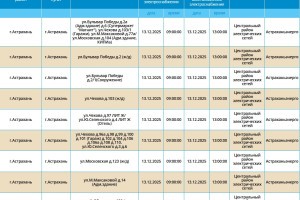 13 декабря на территории города Астрахани пройдут плановые отключения света. Такие меры необходимы для своевременного ремонта электросетей, сообщили сотрудники ПАО «Россети Юг». Отключения затронут центральную часть города, в основном продлятся с 08:00 до 13:00, но некоторым астраханцам придется сидеть без света до 19:00. С полным списком адресов, по которым пройдут плановые отключения можно ознакомиться в галерее ниже: Также напоминаем, что удобнее всего следить за актуальной информацией о перебоях с электричеством, водоснабжением и прочими бытовыми неудобствами на интерактивной карте города. А в случае, если отключения произошли незапланированно, обращайтесь по указанным ниже номерам телефонов: