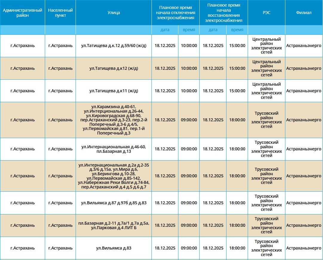 Завтра в областном центре Астраханской области некоторым абонентам на несколько часов отключат электричество. Это необходимая мера для своевременного ремонта электросетей. Так, самые ранние отключения начнутся в 09:00. Без света останутся жители Трусовского и Ленинского районов. Подробнее с адресами можно ознакомиться в галерее ниже: А всю актуальную информацию о коммунальных проблемах нашего города вы можете найти на этой карте. Здесь в режиме реального времени отображаются данные об отключениях электроэнергии, воды и других бытовых неудобствах. В случае внеплановых отключений обращайтесь по телефонам, указанным ниже: