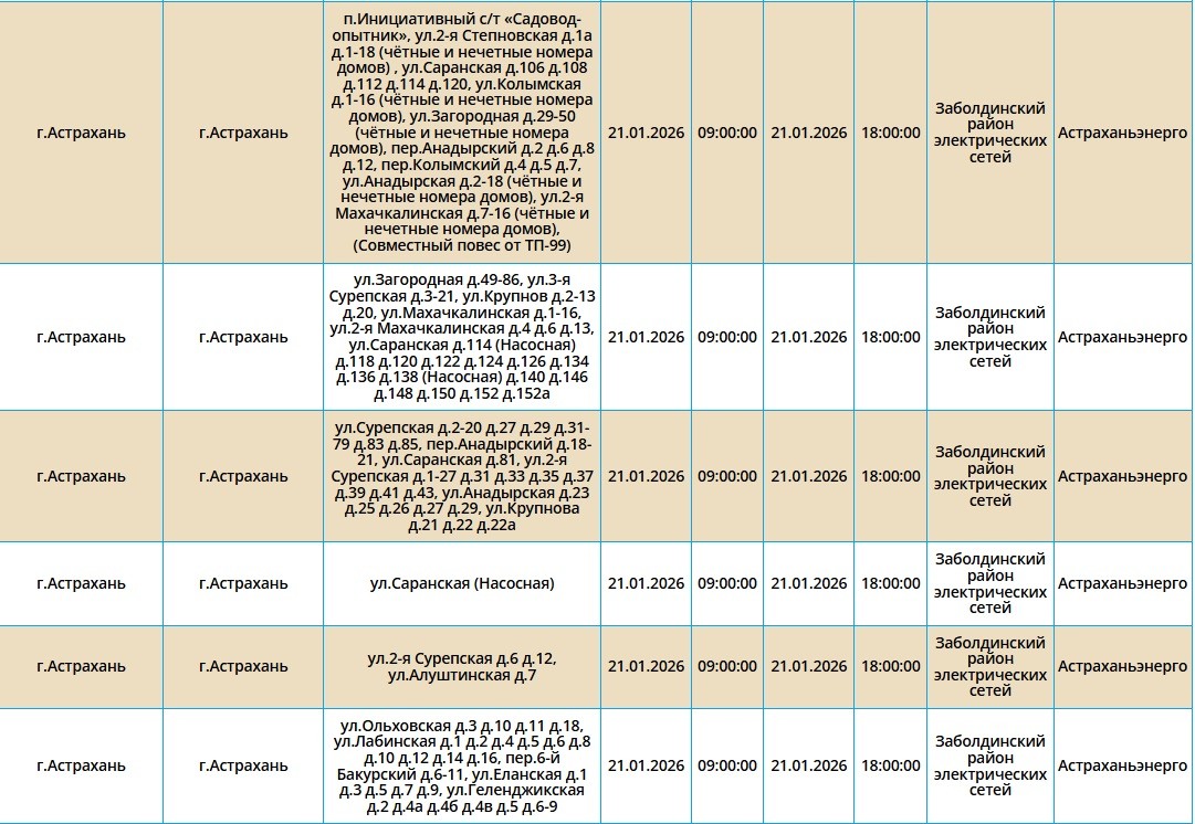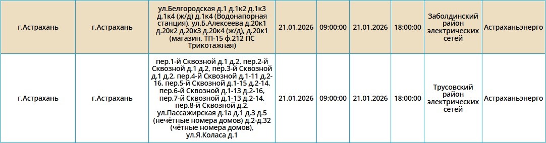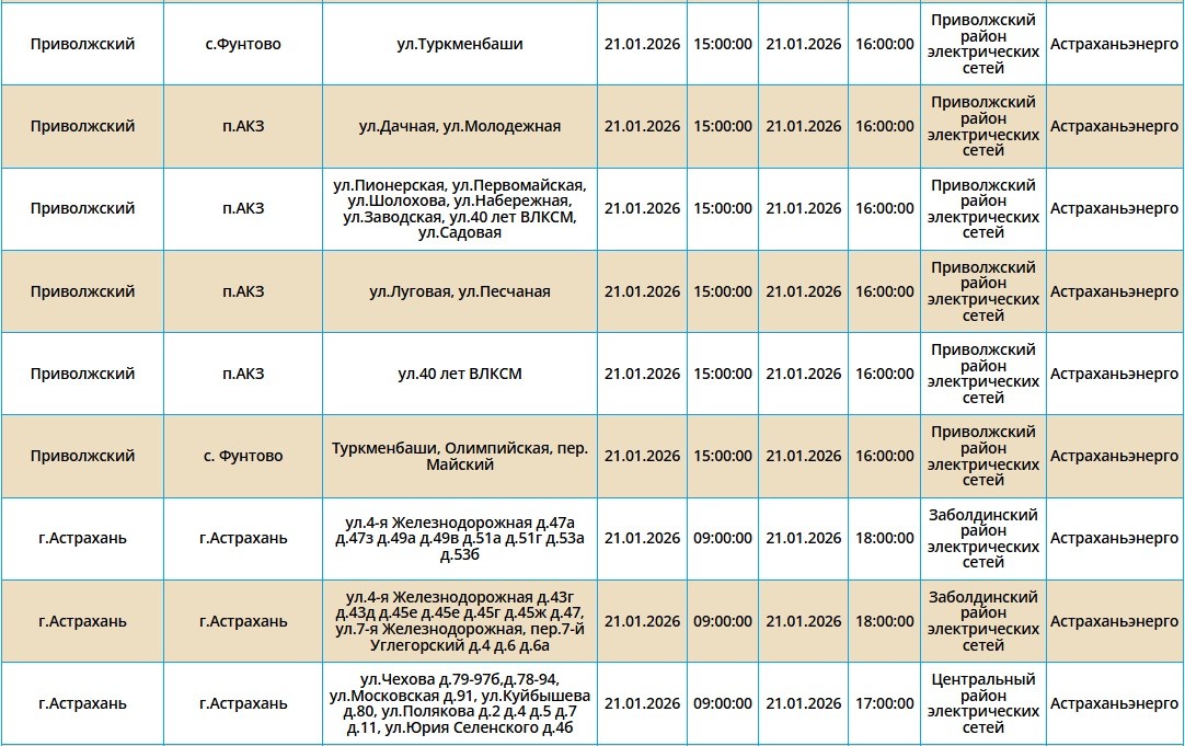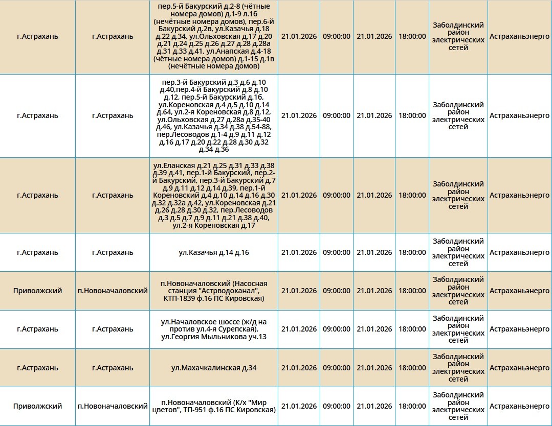 21 января сотни астраханцев снова останутся без света