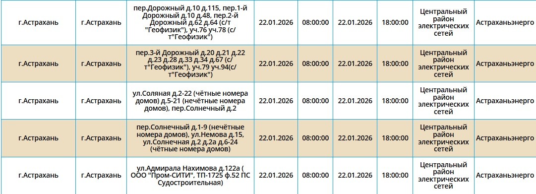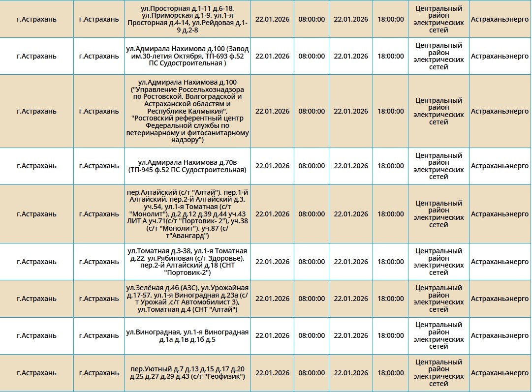 В нескольких районах города Астрахань на 10 часов отключат электроэнергию, об этом сообщили сотрудники ПАО «Россети Юг». Без света останутся десятки жилых домов и административные здания. Свет отключат уже в 08:00 и его не будет в домах и квартирах до 18:00. Астраханцам советуют заранее зарядить все необходимые гаджеты. А с полным списком адресов можно ознакомиться в галерее ниже: Все коммунальные проблемы нашего города отображаются на этой интерактивной карте. Вы можете следить за ситуацией с отключением электроэнергии, водоснабжения и других услуг в режиме онлайн. В случае возникновения непредвиденных ситуаций обращайтесь по представленным контактным номерам телефонов: