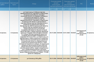 В пресс-службе ПАО «Россети Юг» сообщили о плановых работах на электросетях. Из-за этого астраханцы останутся без света. Так, отключения затронут некоторые министерства и департаменты, вышку сотовой связи, жилые дома. Начнутся работы с 08:00, некоторые из них завершатся к 18:00, другая часть - к 20:00. Подробнее ниже: А информацию обо всех коммунальных проблемах нашего города вы можете найти на этой карте. Здесь, в режиме реального времени, вы можете наблюдать за отключениями света, воды и т.д. Если возникли незапланированные отключения, можно обращаться по указанным контактным телефонам: