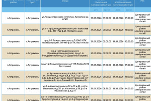 По информации сотрудников ПАО «Россети Юг», в субботу астраханцев ждут новые отключения света. Пройдут они из-за плановых работ на электросетях. Так, электроэнергии не будет в областном центре, а также в Приволжском районе региона. Отключения затронут жилые дома, здание министерства, автостоянку, организации и многое другое. Подробности ниже: А информацию обо всех коммунальных проблемах нашего города вы можете найти на этой карте. Здесь, в режиме реального времени, вы можете наблюдать за отключениями света, воды и т.д. Если возникли незапланированные отключения, можно обращаться по указанным контактным телефонам: