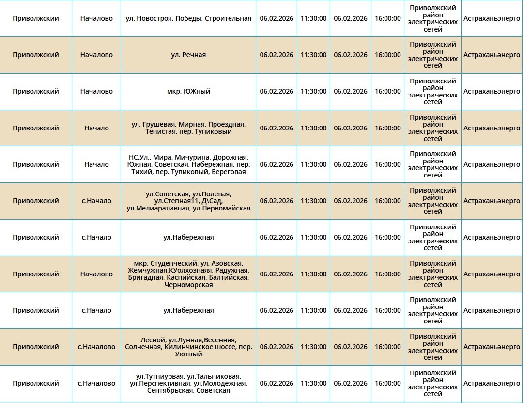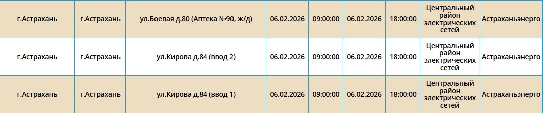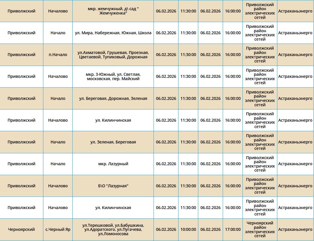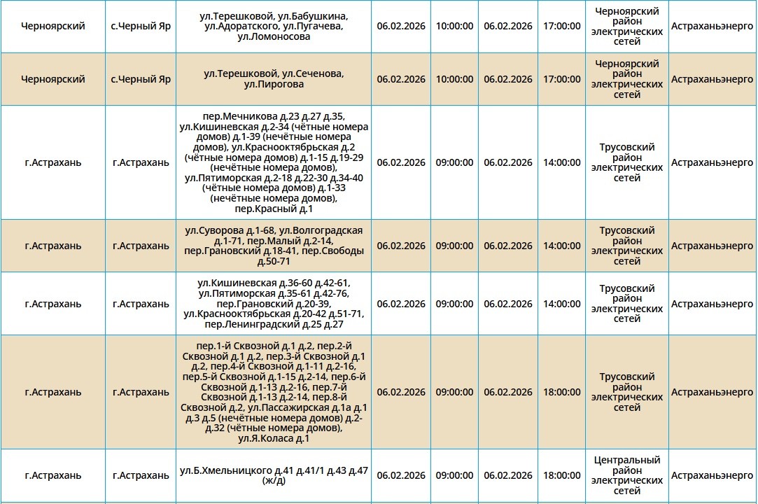 6 февраля в Астрахани и двух районах области отключат электроэнергию