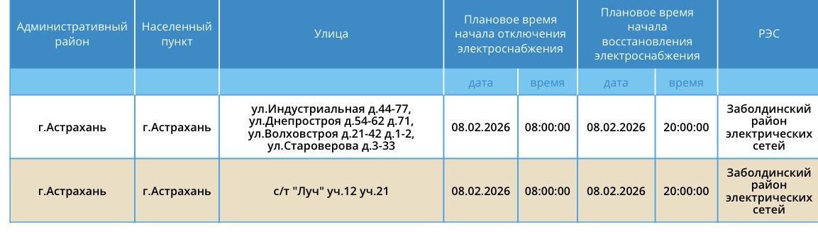 8 февраля в Астрахани пройдут плановые работы на электросетях. Из-за этого некоторые местные жители останутся без света. По данным пресс службы ПАО «Россети Юг», электроэнергии не будет в областном центре с 08:00 до 20:00. Останутся без света жилые дома. Подробности ниже: Удобнее всего следить за актуальной информацией о перебоях с электричеством, водоснабжением и прочими бытовыми неудобствами на интерактивной карте города.