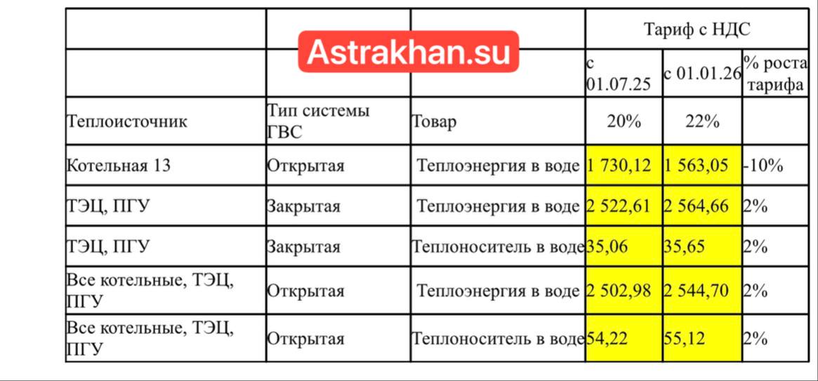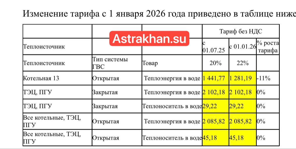 Ни для кого, пожалуй, не секрет, что с 1 января 2026 года коммунальные услуги в Астраханской области подорожали. Новые цены, которые уже отражены в квитанциях, ударили по кошелькам многих местных жителей. Более того, некоторые граждане до сих пор не могут понять, из чего складываются такие довольно немаленькие суммы. Разбираемся в подробностях в нашем материале. В 2026 году в регионе предусмотрено двойное повышение тарифов на коммунальные услуги в связи с изменением налоговой политики и плановой индексацией: С 1 января 2026 года тарифы возрастут примерно на 1,7% - это связано с повышением ставки НДС с 20% до 22%. С 1 октября 2026 года ожидается второй этап индексации - значительное повышение, когда тарифы в среднем могут вырасти почти на 9-10% в регионе. Это означает, что суммарный рост стоимости коммуналки по некоторым позициям может быть заметен уже к осени. К ценам за подачу воды, света или вывоз мусора вопросов нет. Самая неоднозначная ситуация, пожалуй, сложилась именно с отоплением. В редакцию нашего издания обратились жители домов, расположенных на улицах Сен-Симона, Власова, Набережной Приволжского затона, Николая Островского и Богдана Хмельницкого. Астраханцы сообщили о внезапном подорожании тепла. «Неприятная ситуация у нас с коммунальными услугами. Все мы знали об анонсе, вода или свет подорожали, но не столь критично. А вот отопление в прямом смысле дало «жару». Раньше если я платила 1400 рублей, то пришло мне 2500 рублей. Такая разница? А сколько же мы после второго повышения цен будем платить? У меня просто денег не хватит», - жалуется астраханка Надежда Ш, проживающая на Набережной Приволжского затона. «У нас на улице Власова не было отопления несколько дней из-за аварии на улице 2-й Дербентской. Думали, сделают нам перерасчет. Но нет, нам на 1000 рублей выше сделали счет. Я огорчена, таким сюрпризам мы не рады явно», - рассказывает Наталья Л. Несмотря на это, по некоторым адресам платеж за тепло практически не изменился. Чтобы разобраться, с чем это связано, мы обратились в пресс-службу «Астраханских тепловых сетей». Специалисты поделились следующими таблицами. Ознакомиться с ними вы можете ниже: Таким образом, тариф по основным тепловым источникам вырос на 2%, что соответствует повышению НДС в России с 01.01.2026. Кроме того, необходимо помнить о том, что на стоимость услуг отопления для потребителей, помимо тарифа, влияет ряд факторов: Погодные условия. Чем холоднее на улице, тем больше тепла нужно для обогрева, и тем выше расход (если есть счетчики). Энергоэффективность дома. Утепление фасадов, окон и стен снижает теплопотери, уменьшая расходы. Это касается как общей эффективности дома, так и индивидуальных мероприятий. Настройка системы отопления. Правильная балансировка и автоматизация внутридомовой системы предотвращают перетопы и перерасход тепла, снижая счета. Еще один фактор, влияющий на начисления - исправность общедомового прибора учета (ОДПУ). «ОДПУ - общедомовое имущество. Следить за его исправностью - обязанность УК. При этом на распечатках ведомостей учета параметров тепла можно увидеть, когда срок поверки прибора и примерно понять, насколько корректно он считает», - подытожили в теплосетях. Так что, цены на отопление выросли в Астрахани не из-за планового повышения стоимости ЖКУ, а по причине похолодания, плохого утепления определе