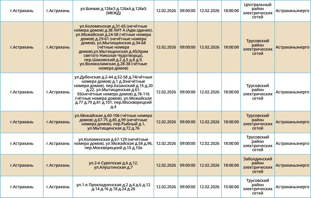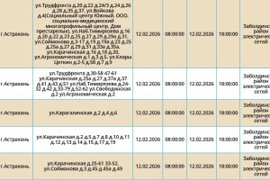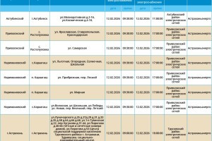 12 февраля в Астрахани, Ахтубинске и двух селах отключат электроэнергию