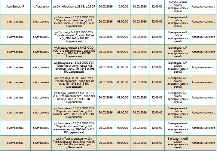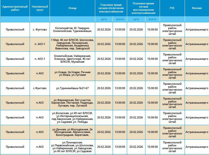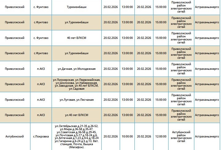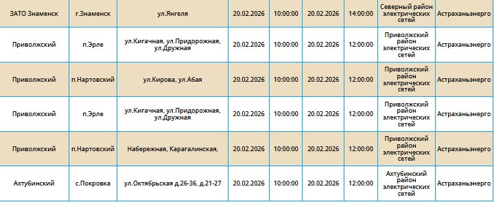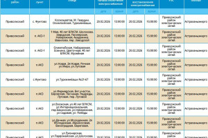 20 февраля в Астрахани, Знаменске и двух районах отключат свет