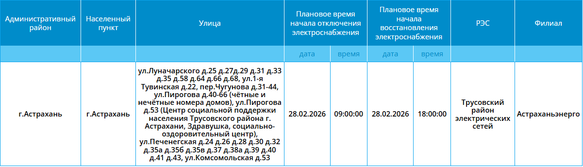Завтра некоторые жители Трусовского района города Астрахани проведут 9 часов без света. Отключения вынужденные и проходят строго по плану, сообщили в пресс-службе ПАО «Россети Юг». Такая мера необходима для своевременного ремонта на электросетях. Поэтому астраханцам рекомендуют заранее подготовиться и зарядить все необходимые гаджеты. А полный список улиц, на которых завтра временно отключат свет, можно посмотреть на фото ниже: Напоминаем, что оперативную информацию о проблемах с электроэнергией, водой и другими коммунальными услугами проще всего отслеживать на интерактивной городской карте. Если же сбои случились неожиданно, сообщайте по приведенным далее контактным телефонам: