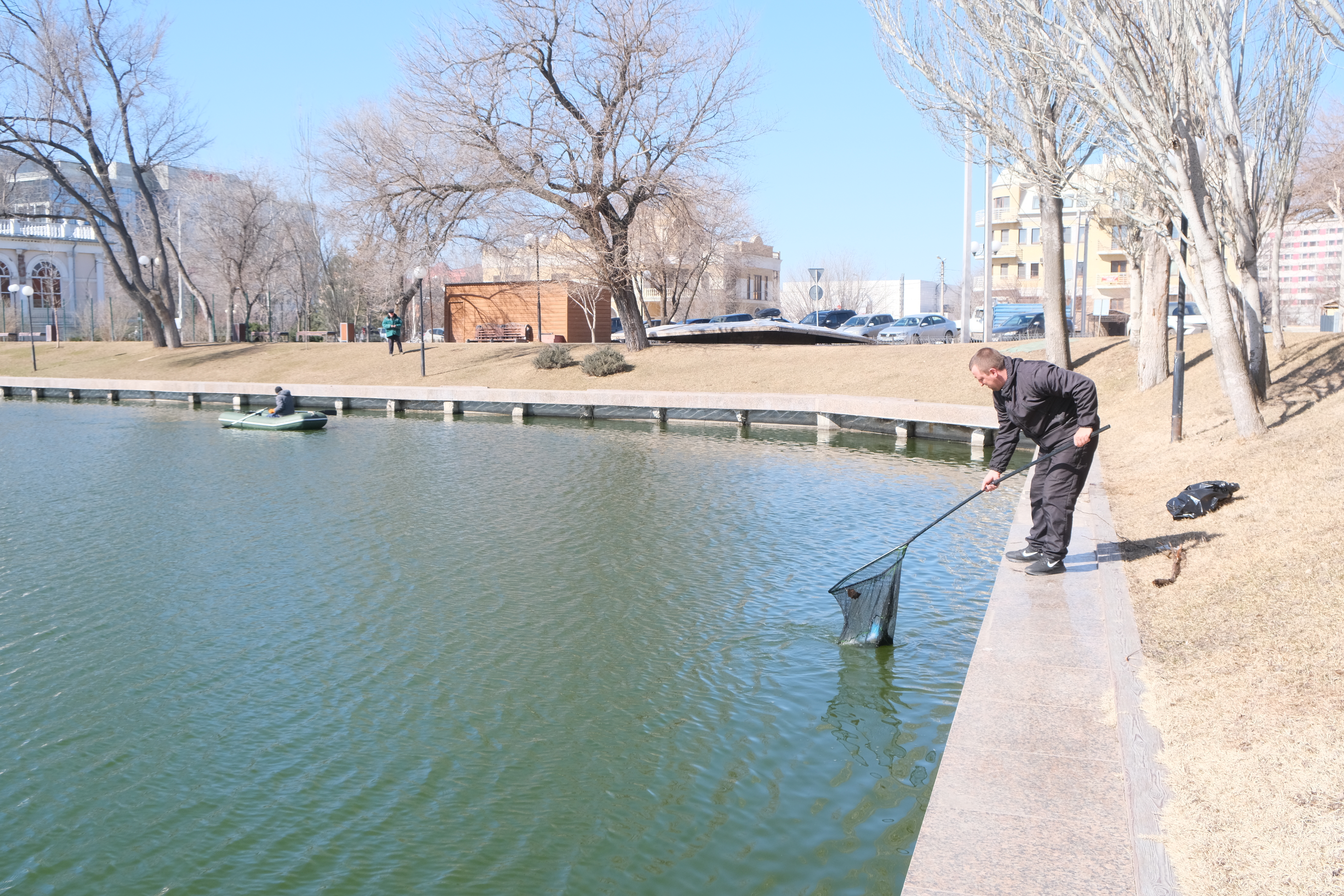В Астрахани весна. А это значит, что работы у городских коммунальщиков прибавилось. Их главная задача сейчас - оперативно и качественно избавить город от «зимнего наследства». По поручению администрации Астрахани, специалисты работают в усиленном режиме. Так, сотрудники МБУ «Зеленый город» приступили к уборке на территории Лебединого озера. Там после схода льда открылась неприятная картина в виде огромного количества мусора на воде. Отходы доставали сачком с берега, а также вручную с лодки. Основной «набор» традиционен: упаковка от еды, пластиковые бутылки, пакеты. Также накануне специалисты убирались на мосту Таможенном в створе улицы Адмиралтейской и Воздвиженском в створе улицы Калинина. Работы продолжаются и на Новом мосту.