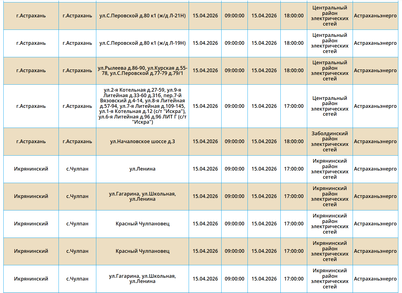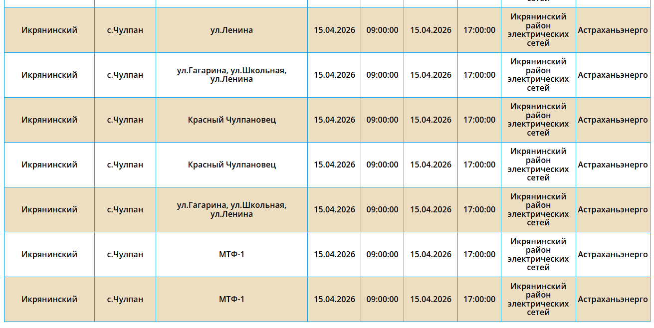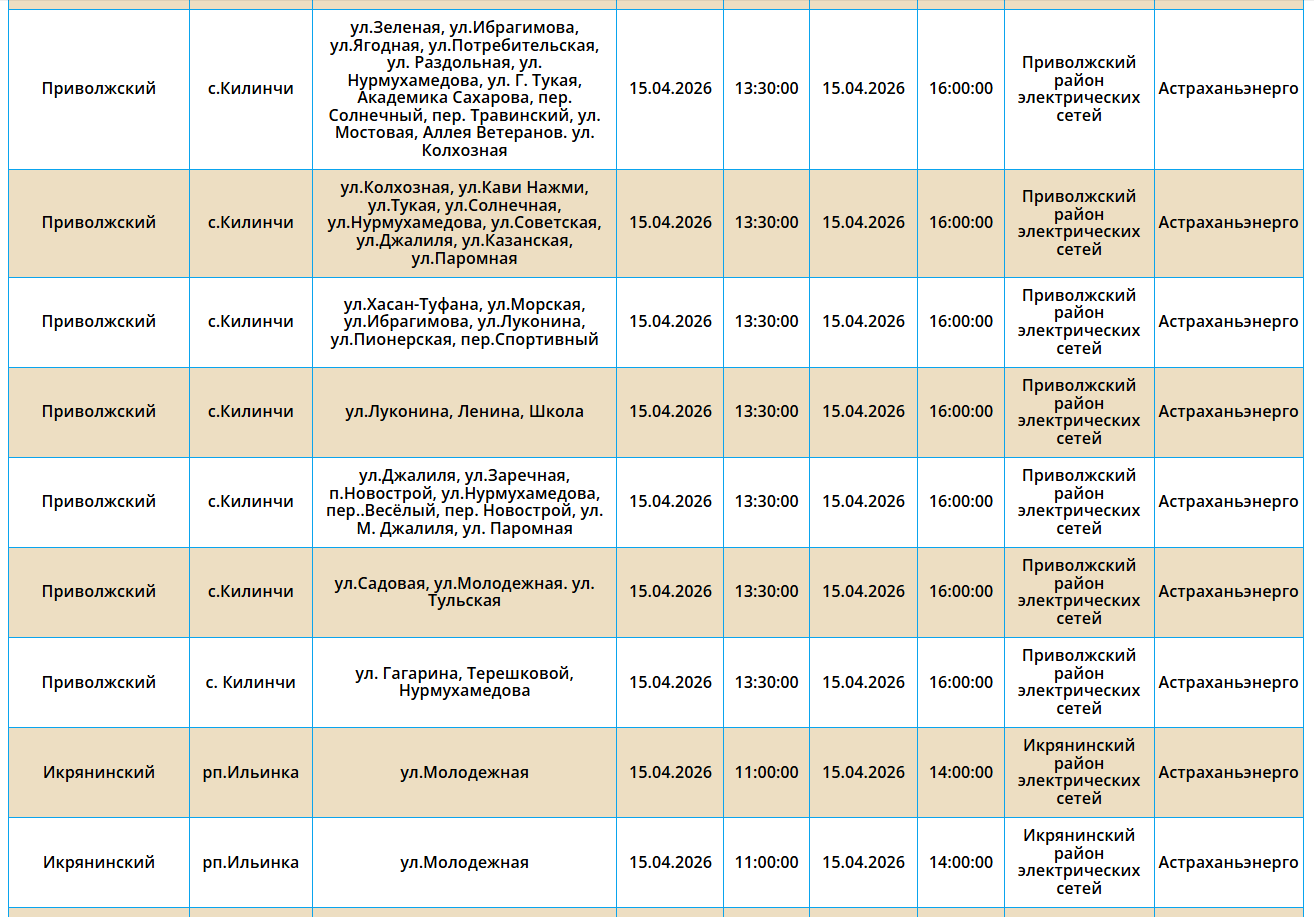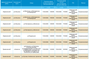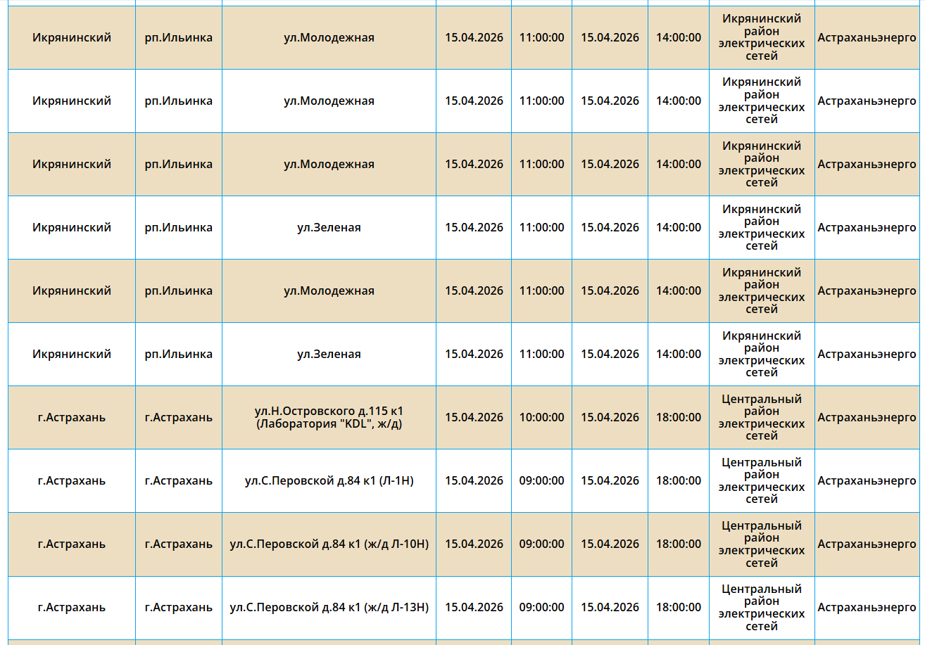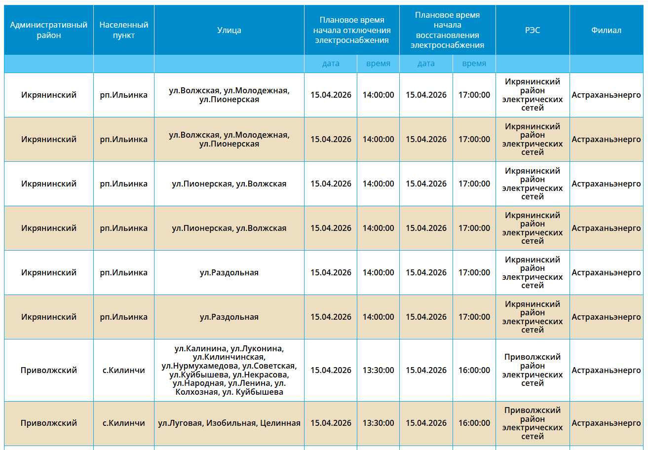 15 апреля в Астрахани и трех селах отключат электроэнергию