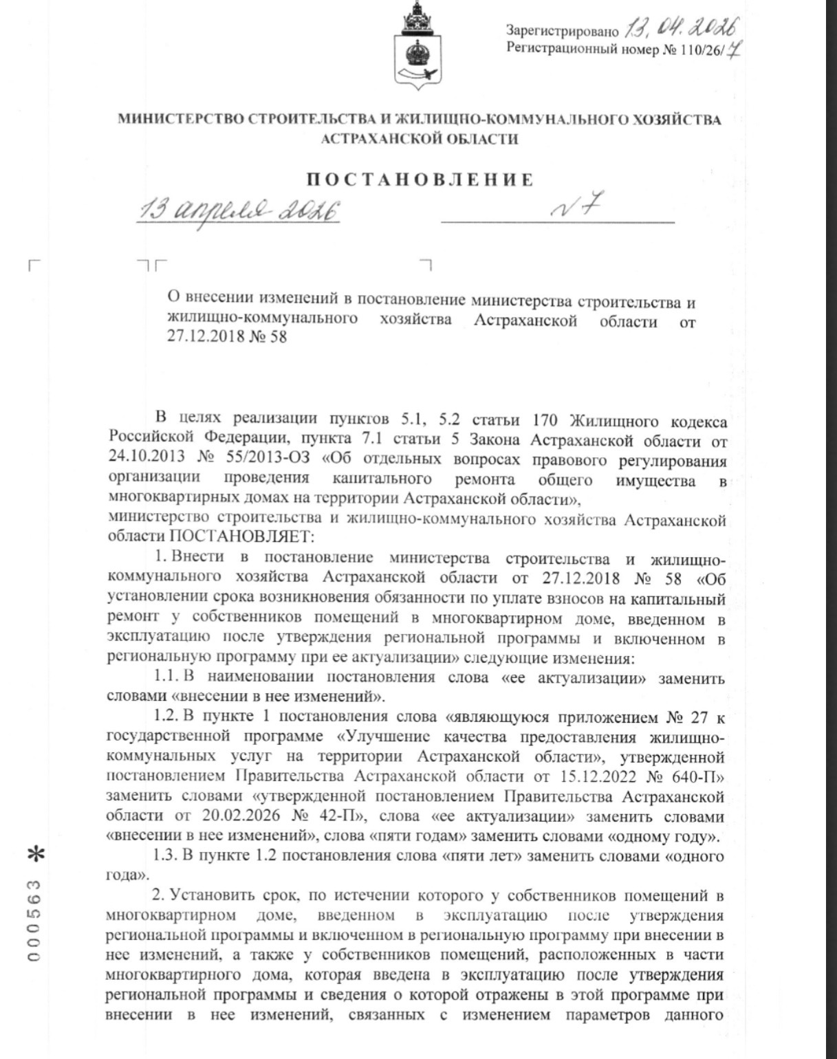 Министерство строительства и жилищно-коммунального хозяйства Астраханской области внесло изменения в порядок уплаты взносов на капитальный ремонт для собственников квартир в новых многоквартирных домах. Нововведения закреплены в соответствующем постановлении, опубликованном 13 апреля 2026 года на официальном портале нормативных документов региона. Основные изменения: Сокращение льготного периода. Ранее собственники освобождались от уплаты взносов на капитальный ремонт в течение первых 5 лет после ввода дома в эксплуатацию. Теперь этот срок сокращен до 1 года. Период действия новых правил. Изменения касаются домов, введенных в эксплуатацию после утверждения или обновления региональной программы капитального ремонта, то есть с 1 января 2022 года по 13 апреля 2026 года. Сроки вступления в силу. Постановление начнет действовать через 10 дней после его официального опубликования. Собственники квартир в новых домах, попадающих под действие документа, начнут платить взносы через 7 месяцев после вступления постановления в силу. Судя по всему, сокращение льготного периода связано с необходимостью более равномерного и своевременного формирования фондов капитального ремонта. Пятилетняя отсрочка приводила к недостатку средств на проведение ремонтов в более старых домах, так как новые дома не участвовали в формировании общего фонда. Теперь все собственники будут вносить свой вклад в систему капремонта практически сразу после заселения. Как это повлияет на жителей Для владельцев квартир в новостройках это означает появление новой статьи расходов уже через год после получения ключей. А суммы там приличные, даже для обладателей однокомнатной квартиры. Размер взноса будет определяться региональными тарифами, установленными для многоквартирных домов. При этом жильцы по-прежнему смогут контролировать расходование средств через специализированные фонды и получать отчеты о проведении работ. Подробнее с документом можно ознакомиться ниже: