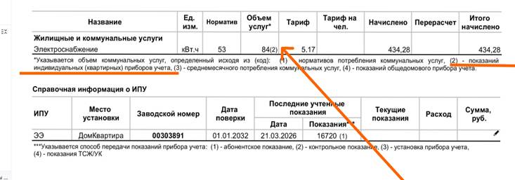 Гарантирующий поставщик электроэнергии ПАО «Астраханская энергосбытовая компания» разъясняет своим потребителям какую информацию можно узнать из платежной квитанции, предоставляемой ООО «Межрегиональный расчетный центр». Как узнать от кого гарантирующему поставщику поступили показания счетчика? Посмотрите на цифру внизу квитанции! Эти сведения расположены внизу документа, в таблице «Справочная информация о ИПУ» и закодированы под цифрами: 1, 2, 3, 4. ИПУ — индивидуальный прибор учета (счетчик). Что означают эти цифры от 1 до 4: – абонентское показание: данные, переданные потребителем электроэнергии. – контрольное показание: показания, зафиксированные при проведении контрольной проверки прибора учёта сетевой (ПАО «Россети – Юг» - «Астраханьэнерго») или энергосбытовой организацией (ПАО «Астраханская энергосбытовая компания»). – установка прибора учёта: данные, зафиксированные сетевой или энергосбытовой организацией, при вводе в эксплуатацию нового электросчётчика. – показания ТСЖ/УК: показания, зафиксированные товариществом собственников жилья или управляющей компанией при ежемесячном снятии данных и переданные гарантирующему поставщику. ОбязанностьТСЖ/УК передавать показания счетчиков (за исключением "умных") установлена договором на снабжение электроэнергией, заключенным с гарантирующим поставщиком. Необходимость такого условия в договоре установил законодатель. Если показания могут передать: контролер, потребитель, УК, ТСЖ, то чьи показания попадут в квитанцию на оплату? В квитанции будут отражены показания, которые сняты последними (наибольшие показания) и поступили в установленный срок. То есть, если контролер приходил 15-го числа, УК—20-го, а сам потребитель снял показания 21-го числа, то в квитанции будет стоять цифра «1» – абонентские показания. То что показания учтены при начислении платы также видно в квитанции. На картинке ниже на это указывает оранжевая стрелка. Что делать, если при получении квитанции увидели неправильные показания? В таком случае потребителю следует подать заявление о проверке электросчетчика и снятии контрольных показаний в ПАО «Астраханская энергосбытовая компания». Подать заявление можно онлайн на сайте компании. После проверки в квитанции отразится корректировка начислений по контрольным показаниям электросчетчика. Если хотите быть в курсе последних новостей по вопросам электроснабжения, подпишитесь на канал ПАО «Астраханская энергосбытовая компания» в МАКСе, Одноклассниках или ВКонтакте.