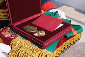 Церемония вручения состоялась на территории гвардейского реактивно-артиллерийского соединения Южного военного округа (ЮВО). В торжественной обстановке воинской части был вручен Орден Суворова — одна из высших государственных наград Российской Федерации. На церемонии присутствовали представители высшего командования ЮВО, личный состав соединения, члены семей военнослужащих, ветераны, юнармейцы и представители ветеранских организаций. Также в мероприятии приняли участие рота почетного караула и военный оркестр. Кульминационным моментом церемонии стало прикрепление представителем командования ЮВО Ордена Суворова и орденской ленты к Боевому знамени соединения. Это было сделано в соответствии с Указом Президента Российской Федерации за проявленные личным составом мужество и героизм в ходе выполнения задач специальной военной операции. После вручения знамя с вновь полученной наградой было торжественно продемонстрировано всему личному составу. Волонтеры «Мы с Vами. Zнаменск» передали бригаде автомобиль для нужд подразделения. В продолжение церемонии представителям командования военного округа и соединения были вручены государственные и ведомственные награды воинам-артиллеристам, отличившимся в ходе специальной военной операции. Торжества завершились праздничным концертом, в котором приняли участие военный оркестр ЮВО и творческие коллективы Астраханской и Волгоградской областей. Примечательно, что ровно 80 лет назад, 25 апреля 1945 года, за образцовое выполнение заданий командования в борьбе с немецко-фашистскими захватчиками и при овладении городом-крепостью Глогау, проявленные при этом доблесть и мужество, Указом Президиума Верховного Совета СССР бригада была награждена орденом «Кутузова II степени».