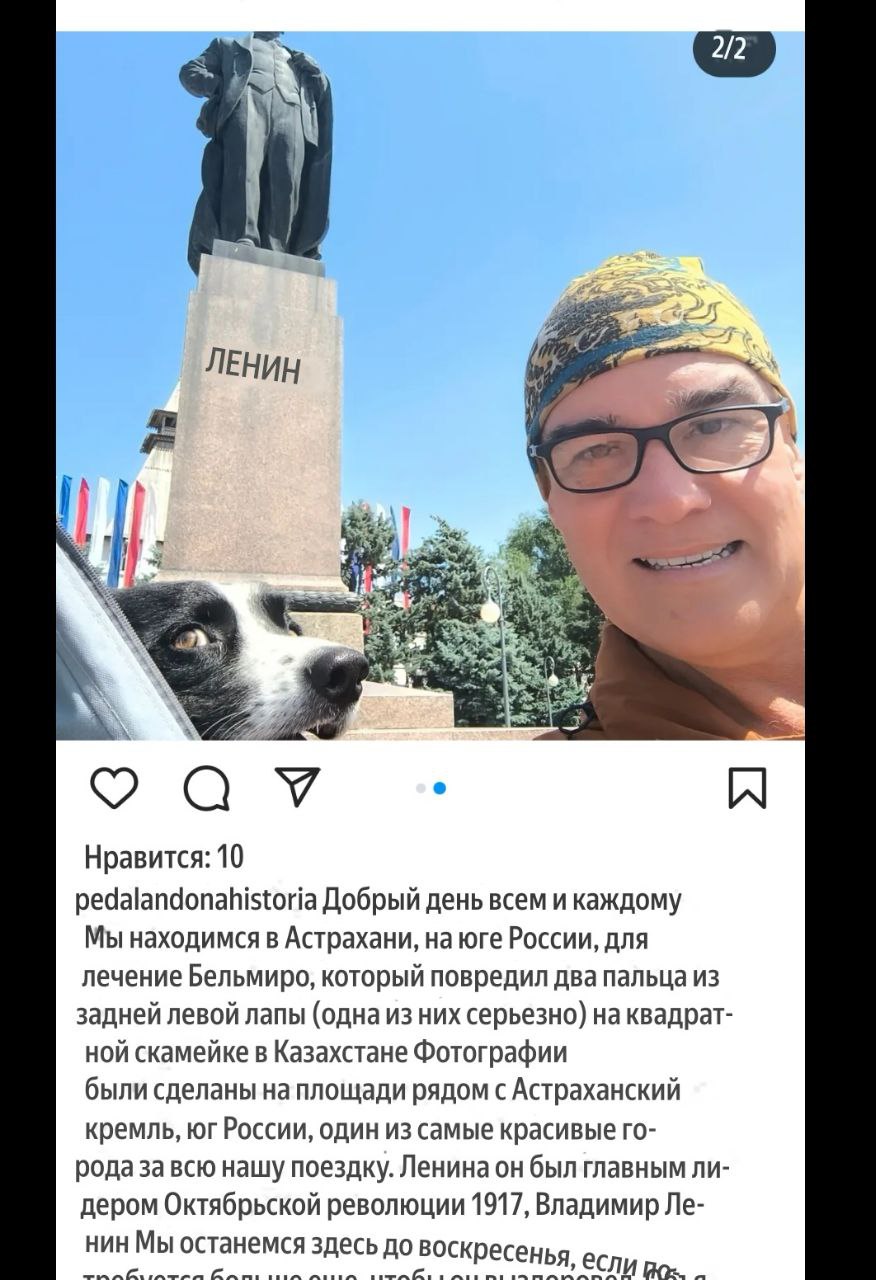 Горожане заметили в центре Астрахани велосипедиста с собакой, который оказался известным португальским тревел-блогером. Ветер странствий занес его и в Каспийскую столицу. Историк Элефе Пече путешествует со своей собакой на велосипеде по разным странам, свои впечатления он описывает в соцсети Instagram (принадлежит Meta, которая признана в РФ экстремистской и запрещена). Ранее блогер побывал в Узбекистане и Казахстане. А на днях велотурист побывал в Астрахани. Он опубликовал фотографии со своим хвостатым спутником, кадры были сделаны на площади Ленина. Путешественник отметил, что Астрахань - один из самых красивых городов, который он видел за всю поездку, а побывал блогер в десятках стран. Не так часто туристы оставляют положительные отзывы об Астрахани, поэтому прочитать такое всегда приятно. "Увидел необычного велосипедиста и решил проверить его соцсети, оказалось, он известный блогер! Здорово, что Астрахань привлекает не только рыбаков", - сообщил нам астраханец Александр.