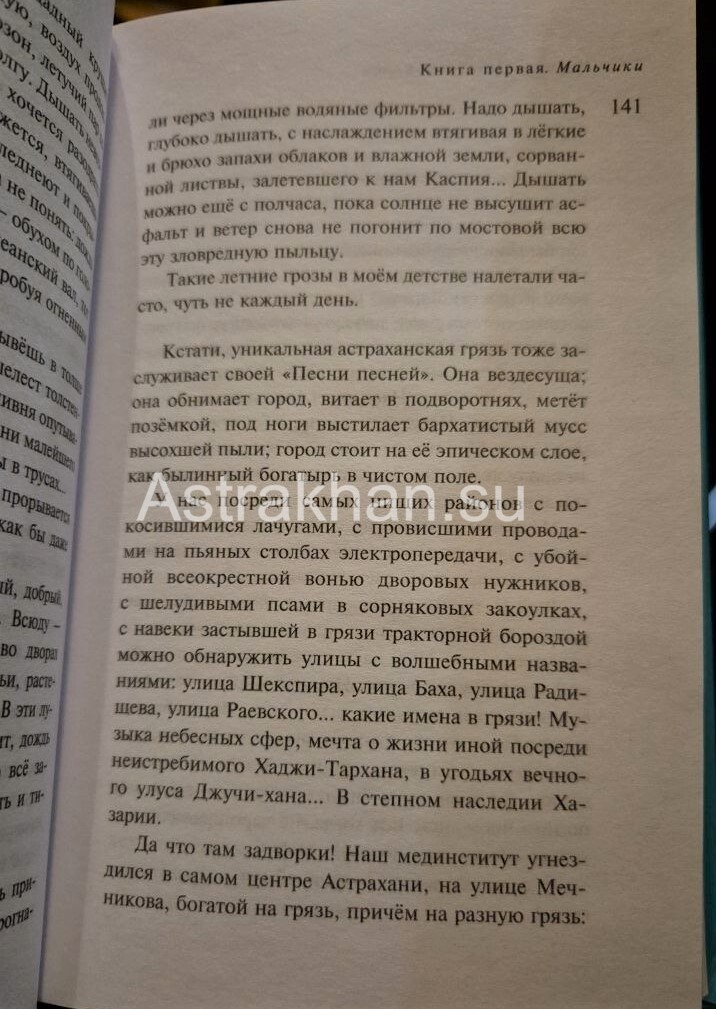 В 2024 году вышел в свет роман Дины Рубиной "Дизайнер Жорка. Книга первая. Мальчики". Произведение интересно и само по себе, но астраханцам - особенно. Автор приглашает в путешествие по улочкам Каспийской столицы, которая кажется на страницах книги и привычной, и незнакомой. Кратко расскажем о сюжете. В новом романе Дины Рубиной сюжет охватывает локации в советской Астрахани, Польше и военной Бухаре. «Мальчики» - это начало захватывающей истории о приключениях «Дизайнера Жорки». Дед и отец десятилетнего Ицика, героя книги, собрали уникальную коллекцию из 387 часов. Когда семья Ицика спасалась от гитлеровского нашествия, они оказались в эвакуации. Через несколько лет он вернулся в родной дом, но вместо коллекции часов увидел лишь руины. Эта потеря подтолкнула его к участию в деле, которое журналисты назвали «Элегантное ограбление». Поклонники творчества Дины Рубиной ценят ее не только за динамичные сюжеты, но и за яркий, выразительный язык. И мы с интересом взялись за книгу, чтобы посмотреть, как писательница воссоздала облик советской Астрахани. Надо сказать, что картины получились очень достоверные, которые наверняка отзовутся в сердце каждого коренного астраханца. Когда с ностальгией и светлой печалью, а когда и с раздражением, если речь идет про грязные улицы города. Тем более, что астраханская грязь описана просто виртуозно. Немало в книге знаковых и милых для астраханца явлений, слов. Например, описание Больших Исад или местных помидоров. Встречается и словечко "демьянка". Ранее мы писали, что оно сейчас исчезает из речи. По сюжету, один из героев живет на Красной Набережной. Это пространство в книге описано очень ярко и узнаваемо. И сейчас, даже спустя много лет, улица сохранила свой шарм купеческого южного города. Но время бывает убийственно для наших краев без должного внимания, и многие дома сейчас приходят в упадок. Пройдемся по набережной и взглянем своими глазами: "Я неоднократно прогуливалась по набережной именно с целью найти этот дом. Там ведь действительно рядом есть конюшни, на Калинина. Но мне кажется, это собирательный образ особняка, каких много в историческом центре Астрахани. Главное, что Рубина передала атмосферу советского прошлого, которая и мне хорошо знакома", - рассказала в беседе с редакцией пенсионерка Ангелина Д., которая следит за книжными новинками. Астрахань часто можно встретить на страницах книг. За комментарием мы обратились к доктору филологических наук, доцент, профессору кафедры литературы Астраханского госуниверситета им. В. Н. Татищева Анне Боровской. Она давно изучает феномен астраханского текста, и привела пример из исследования, посвященного лирике астраханца Бориса Шаховского: "Художественное воплощение образов Волго-Каспия и Астрахани в различных произведениях определяется фактографичностью и детализированностью описаний в русле реалистической концепции творчества. К примеру, в лирике Б. Шаховского город предстает как некое «хронотопическое» единство, существующее одновременно в культурно-историческом прошлом, настоящем и будущем, и как мифогенный топос, вследствие чего вполне конкретные городские реалии становятся сюжетно-образными элементами городского мифа. Специфика Волго-Каспийского и ýже – астраханского – текстов в творчестве поэта формируется благодаря особым пр