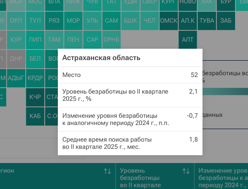 Наши коллеги из «РИА Новости» подготовили очередной занимательный рейтинг. Эксперты составили топ регионов России по уровню безработицы. Исследователи уверены: в России уже достаточно долгое время сохраняется тенденция снижения уровня безработицы. При этом наблюдается кадровый дефицит в ряде отраслей. По итогам второго квартала 2025 года уровень безработицы показал очередной рекорд, снизившись на 2,2 процента. На поиск работы во втором квартале 2025 года в среднем было необходимо чуть более пяти месяцев. По сравнению с аналогичным периодом прошлого года, срок поиска работы снизился более чем на полмесяца. Безработица сократилась почти во всех регионах, и при этом в подавляющем большинстве субъектов Федерации она составила менее трех процентов. Лидером рейтинга стала Москва с уровнем безработицы в 0,8%. А вот Республика Ингушетия оказалась в конце списка с показателем в 26%. Астраханская область в топе где-то в середине, на 52-м месте. Среднее время поиска работы по регионам во втором квартале 2025 года варьировалось от 1,5 месяца до 11 месяцев. Быстрее всех смогут найти работу (время поиска менее двух месяцев) жители Астраханской, Сахалинской, Ульяновской, Тюменской областей и Чукотки. В будущем эксперты не исключают роста уровня безработицы, что обусловлено снижением темпов роста экономики. При этом все же безработица будет находится на низком уровне и не превысит трех процентов. В Астраханской области уровень безработицы продолжает сокращаться