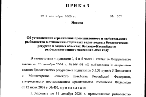 Минсельхоз России принял решение продлить запрет на промышленный и любительский лов воблы вплоть до конца 2026 года. Об этом сообщается в приказе ведомства, размещенном на портале правовой информации. Согласно документу, установлен полный запрет на добычу воблы промышленным способом (кроме случаев разрешенного прилова согласно правилам рыболовства) и на любительскую рыбалку в в Каспийском море, а также в водоемах Калмыкии и реки Волги вместе с ее притоками в пределах Астраханской области. Кроме того, распоряжение предусматривает аналогичный запрет на промысел плотвы в Икрянинском, Камызякском, Володарском, Лиманском, Красноярском, Наримановском и Приволжском районах области. Ранее Минсельхоз установил запрет на вылов щуки в этих же водных объектах. Ограничения начнут действовать с 11 декабря 2025 года и продлятся до 15 февраля 2026 года, однако существует вероятность его дальнейшего продления на последующие годы. Подобные меры объясняются стремлением восстановить численность популяций рыбы.